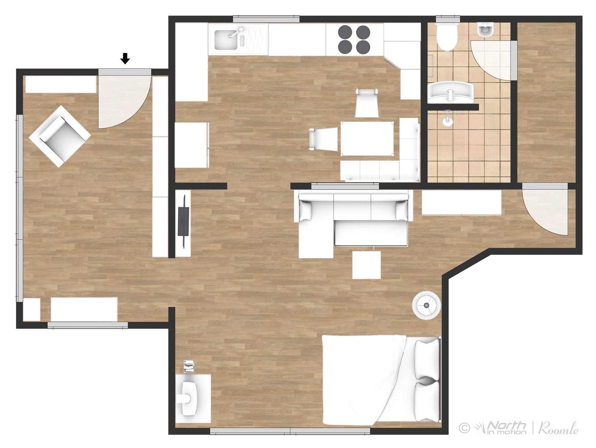 Kombineret stue/soveværelse