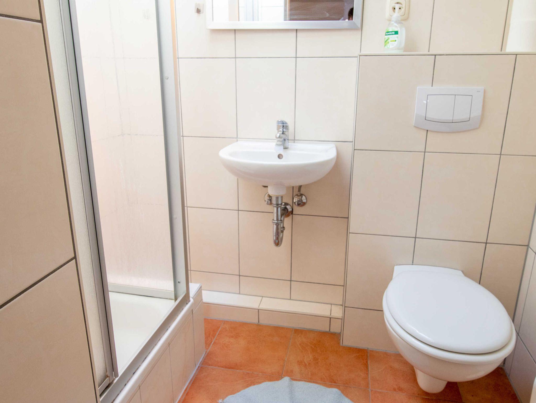 Die 65m² große 3-Raumwohnung für bis zu 5 Personen befindet sich im Dachgeschoss der Pension und ist über 2 Treppen zu erreichen.