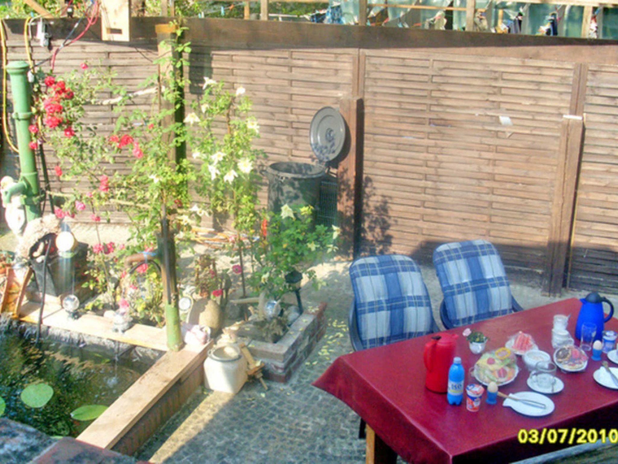 Auf dem Grundstück gibt es eine 500m² große Freifläche (Rasenfläche), welche sich ideal zum Sonnen und Spielen eignet. Die Sitzecke im Garten lädt zum Entspannen und Verweilen ein - hier gibt es auch eine Grillmöglichkeit. Für Kinder gibt es einen Schuppen voller Spielzeug, Sandkasten, Trampolin und Schaukel. Vor Ort gibt es 2 Katzen und Hühner.