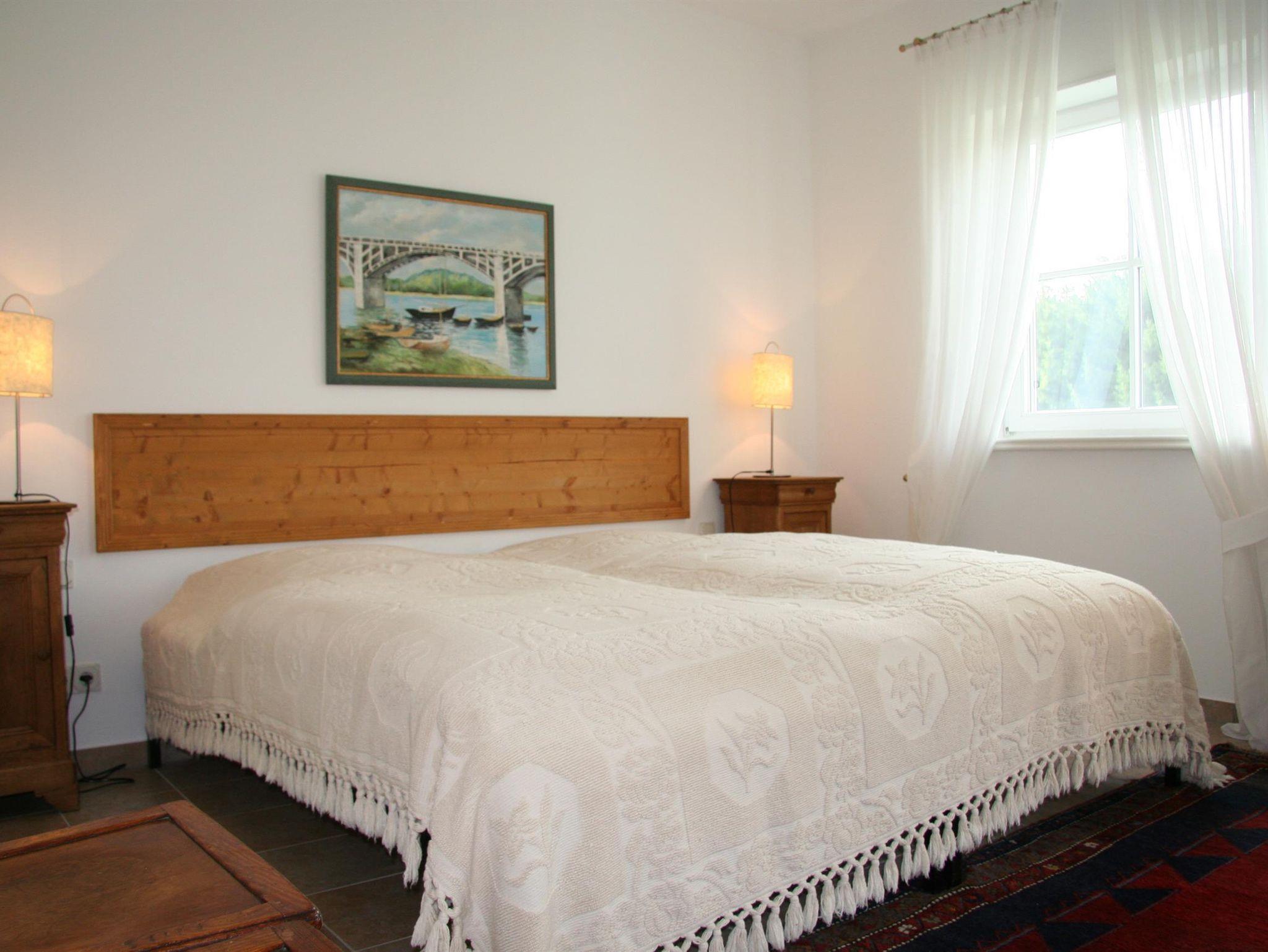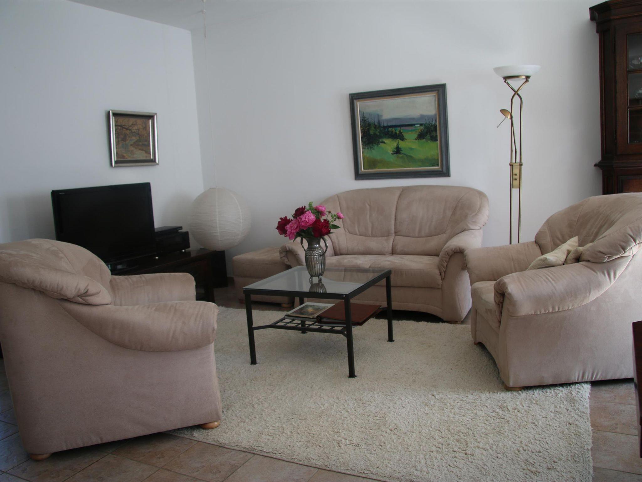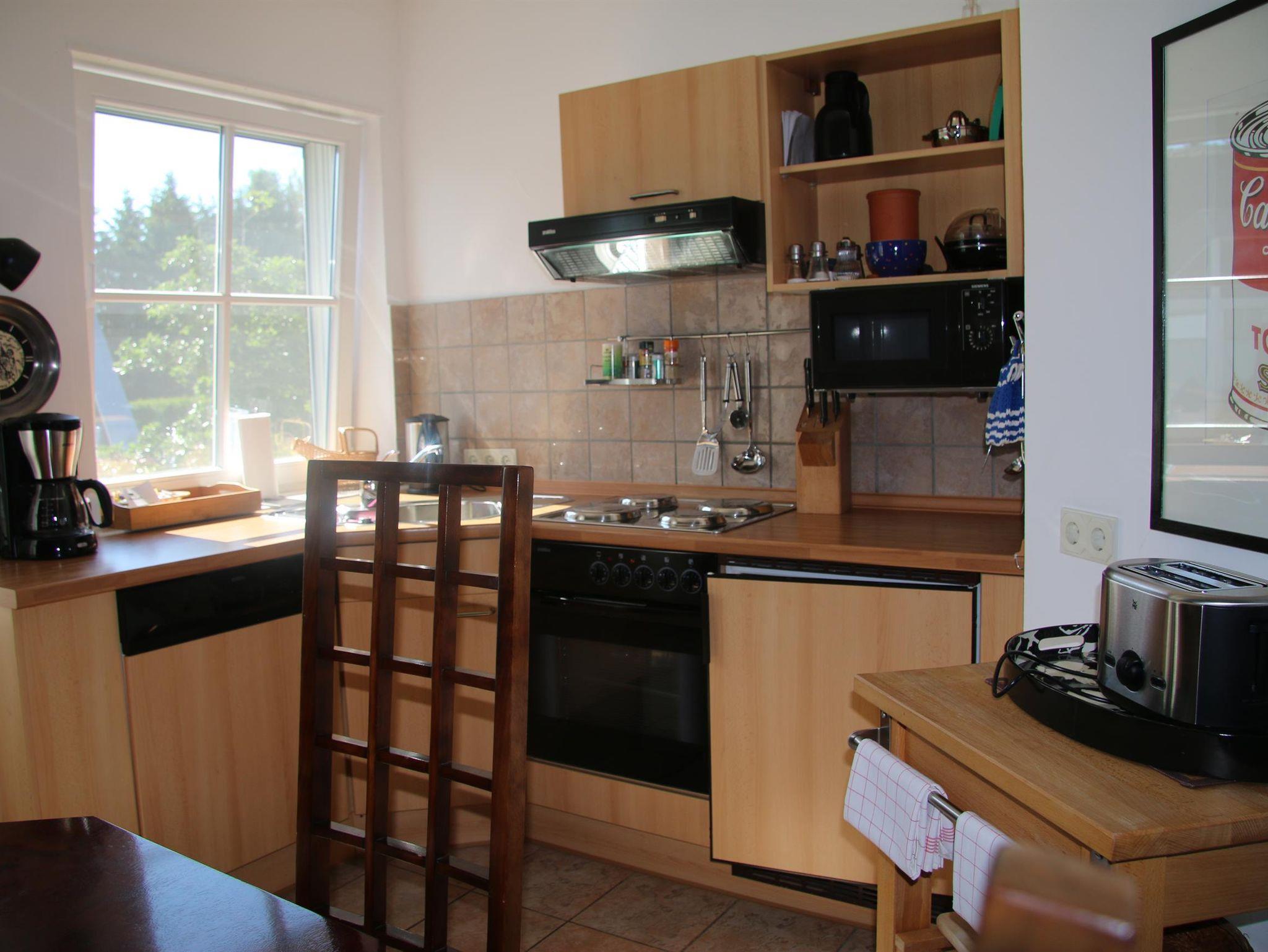 81 m² große Ferienwohnung (Nichtraucher) mit Terrasse bzw. Balkon, individuell und komfortabel gestaltet und eingerichtet, 2 separate Schlafzimmer, Bad mit Badewanne und separater Dusche, Fön, Sat-TV, Radio, CD-Player, Telefon, Kaminofen, Küche mit Backofen, Herd, Spülmaschine, Microwelle, Bettwäsche, Bademäntel und Handtücher inkl. bei Bedarf, - nach Absprache und gegen Gebühr Waschmaschine und Trockner.
