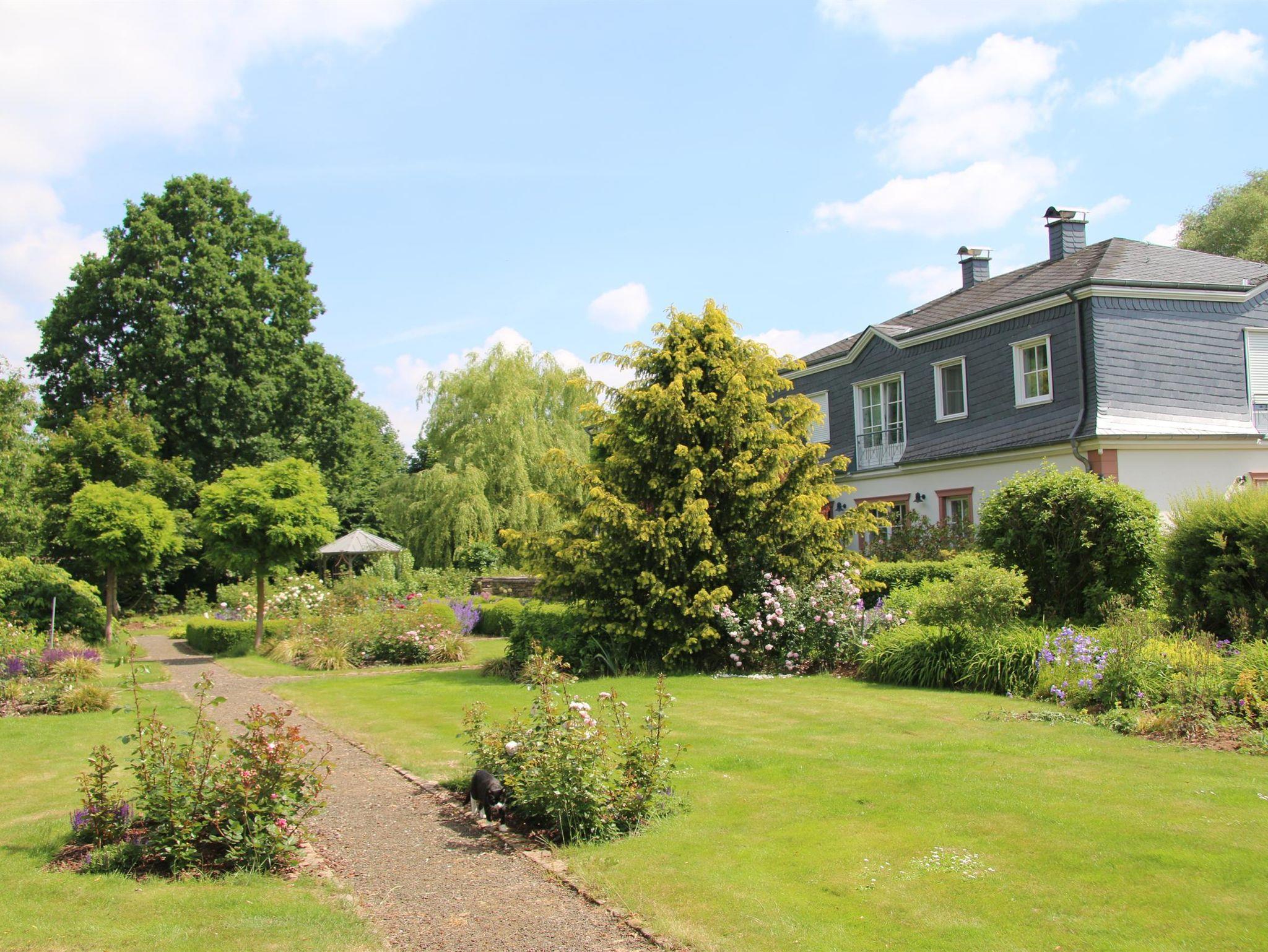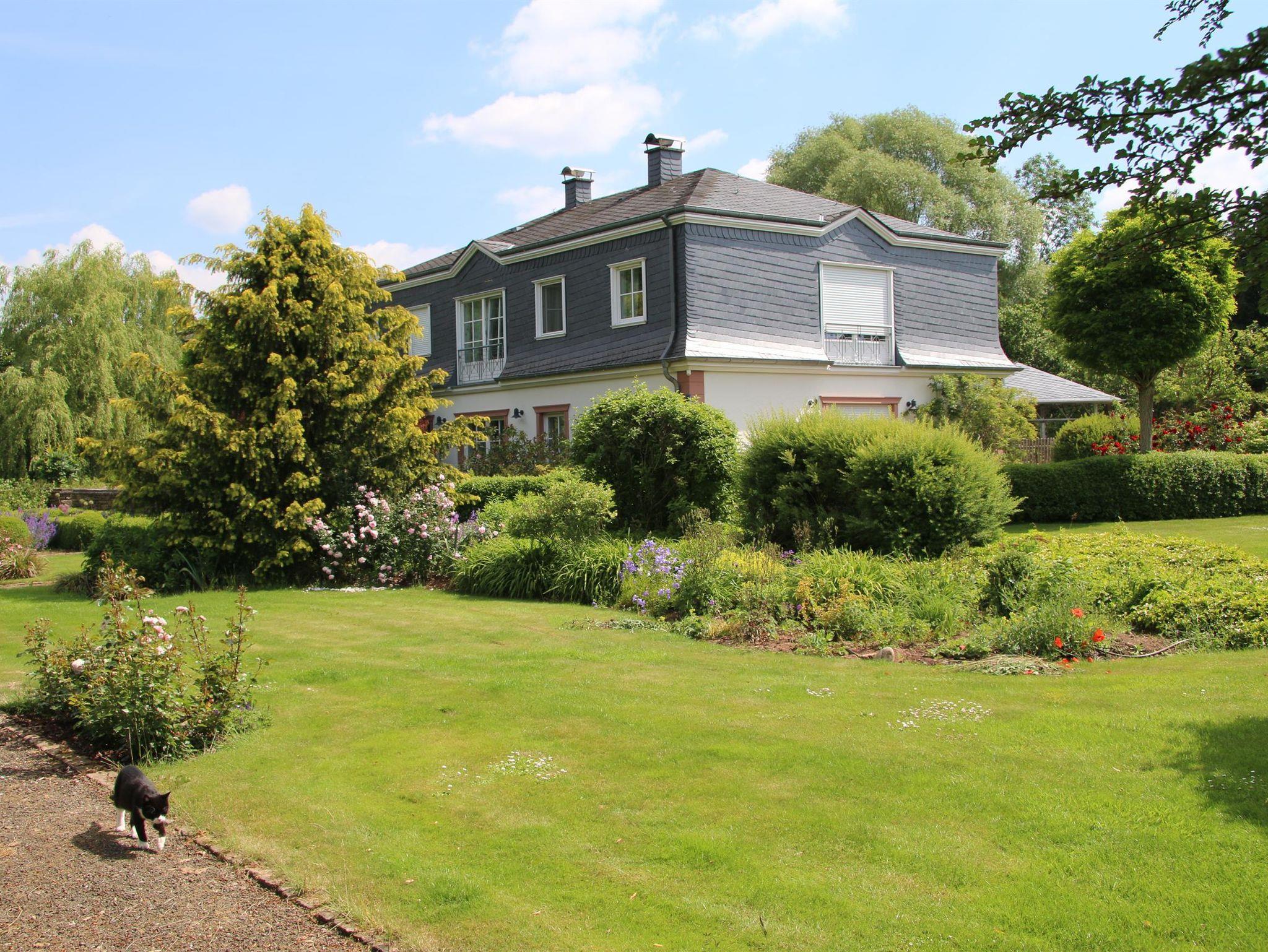 Auf dem Grund der ehemaligen Munkler Mühle steht ein neues Landhaus. Die Hauswiese reicht weiträumig an das Ufer der Prüm heran.