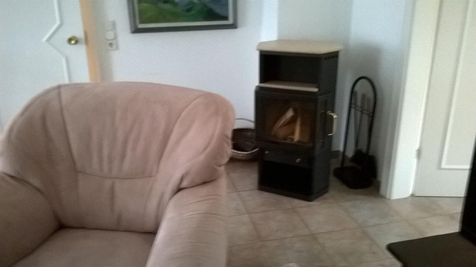 Wohn-Esszimmer: Eine große gemütliche Sitzgruppe, TV, Radio, DVD, DSL, Telefon, Kaminofen. Schöner großer Esstisch mit 4 Stühlen