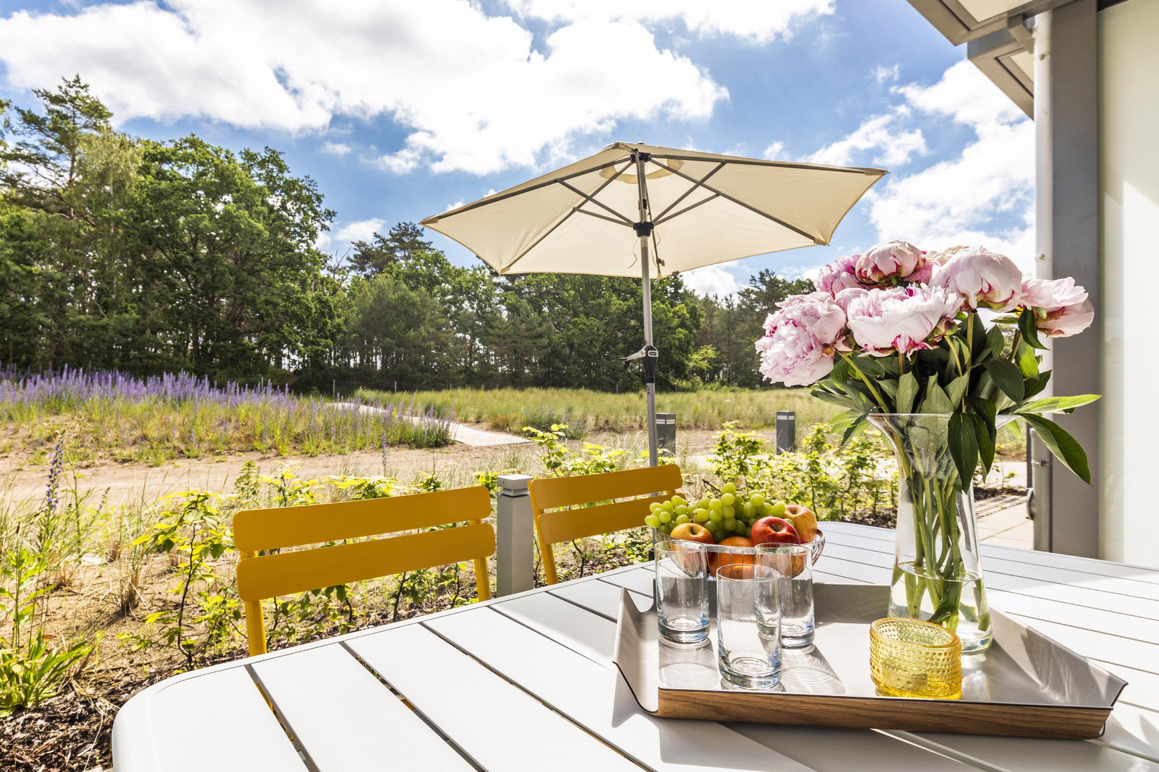 Zu den Highlights der Wohnung gehören die private Sauna im Kellergeschoss, die sich perfekt für eine Auszeit vom Alltag eignet, sowie der kostenlose Strandkorb mit XL-Strandkorb mit Vollliegefunktion direkt am Strand. Die Wohnung ist außerdem mit modernen Annehmlichkeiten wie einem Elektro-Kamin, einem Smart-TV und WLAN mit hoher Geschwindigkeit ausgestattet. Auf dem Parkplatz gibt es zudem eine E-Ladestation für Elektroautos. Die Terrasse bietet eine schöne Sitzmöglichkeit mit Blick auf die Dünenlandschaft.