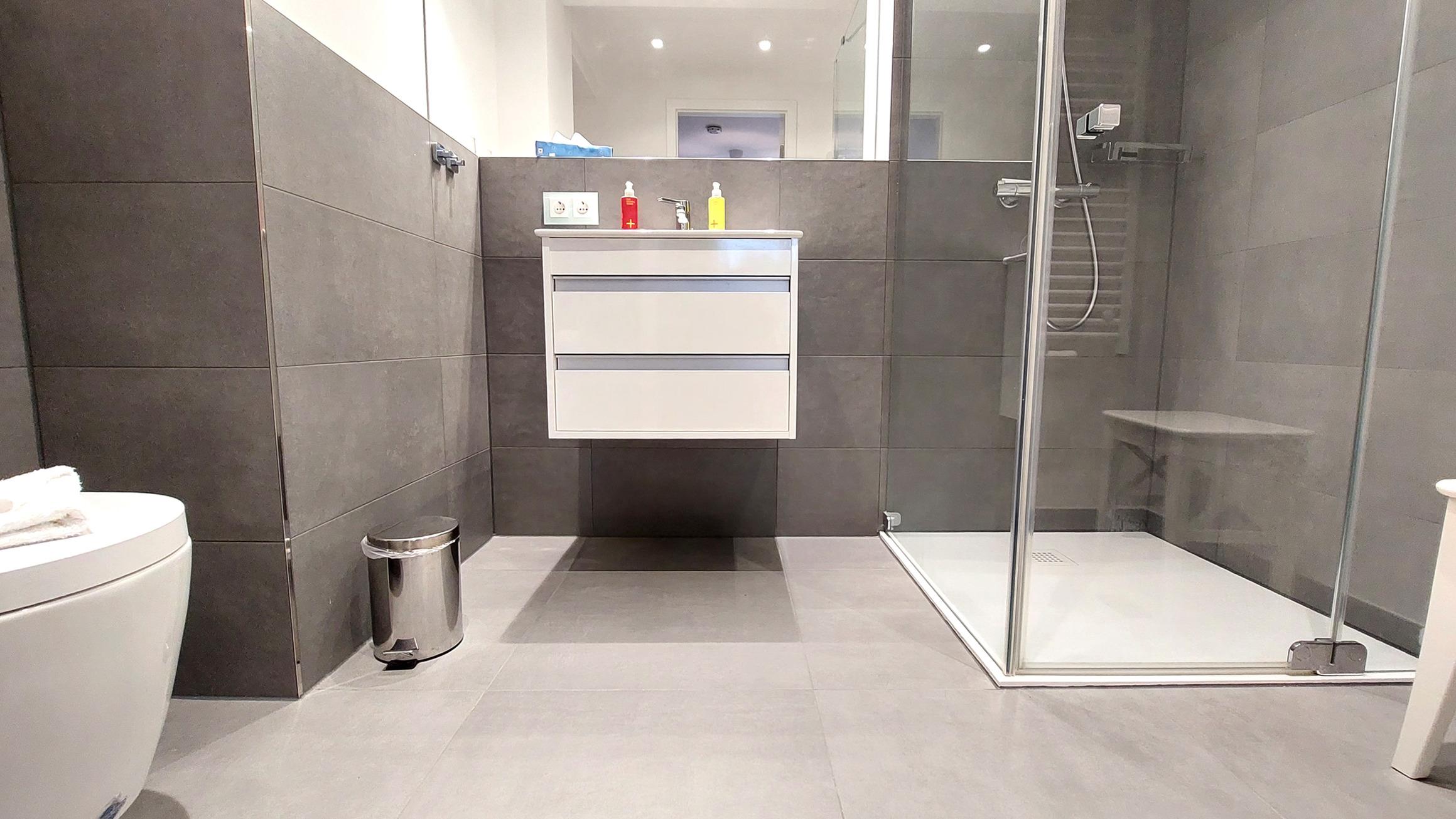 Die Wohnung verfügt über 2 vollwertige Schlafzimmer, jeweils mit einem Doppelbett, Kleiderschrank und eigenem Fernseher. Eines der Schlafzimmer hat außerdem ein eigenes Badezimmer ("Bad en Suite"). Das zweite Badezimmer ist ebenfalls ausgestattet mit WC, Waschtisch und ebenerdiger Dusche.