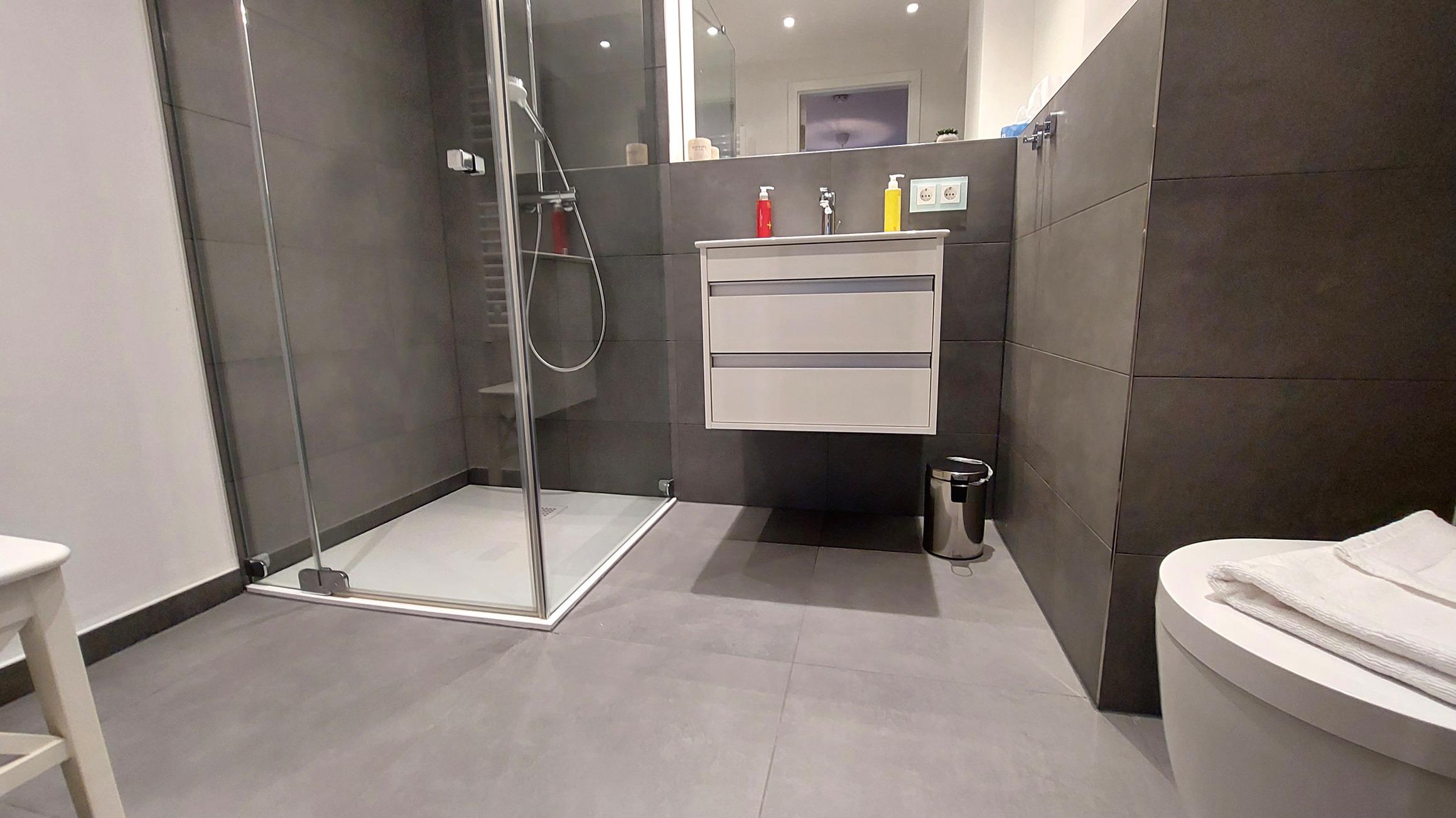Die Wohnung verfügt über 2 vollwertige Schlafzimmer, jeweils mit einem Doppelbett, Kleiderschrank und eigenem Fernseher. Eines der Schlafzimmer hat außerdem ein eigenes Badezimmer ("Bad en Suite"). Das zweite Badezimmer ist ebenfalls ausgestattet mit WC, Waschtisch und ebenerdiger Dusche.