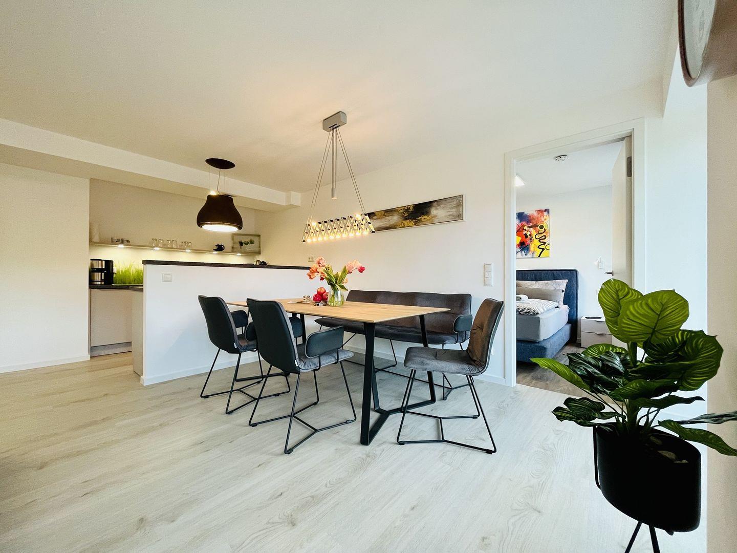 Die Wohnung begeistert mit einer zeitgemäßen Einrichtung, die Eleganz und Gemütlichkeit vereint. Mit zwei liebevoll gestalteten Schlafzimmern bietet der "Ruhepol" ausreichend Platz für Familien oder Freunde, die gemeinsam die Schönheit der Ostseeküste erkunden möchten.