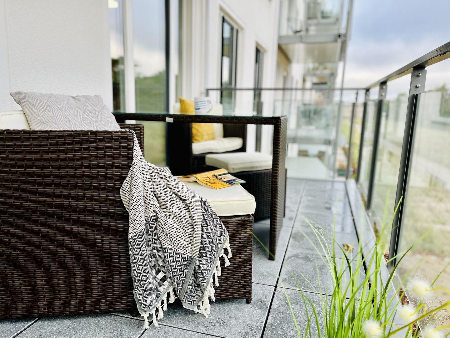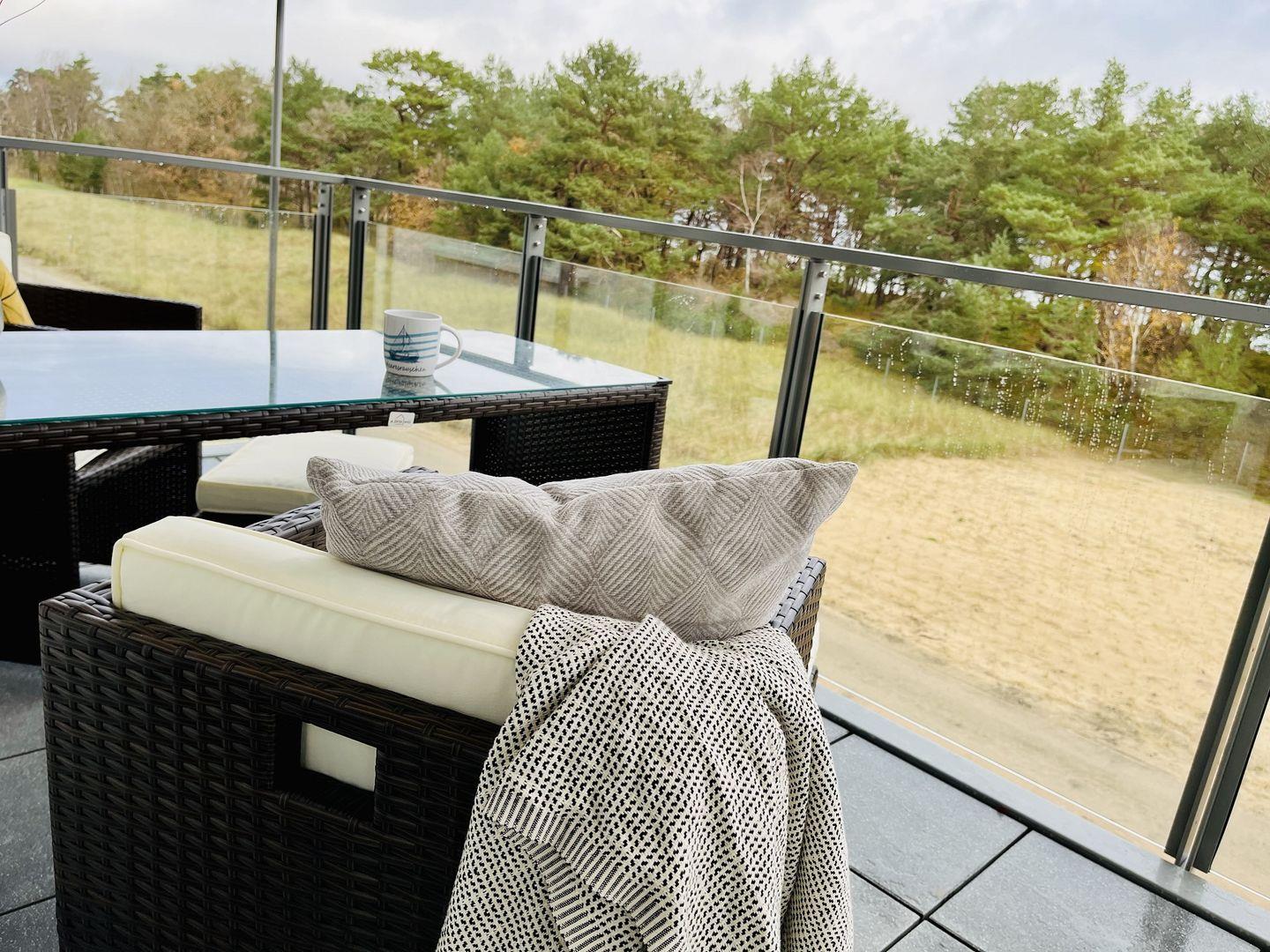 Ihr eigener Balkon in der 2. Etage ermöglicht es Ihnen, die salzige Meeresluft zu inhalieren und dabei die Aussicht auf die Umgebung zu genießen. Ein wunderbarer Ort, um den Tag mit einem atemberaubenden Sonnenuntergang über der Ostsee ausklingen zu lassen.
