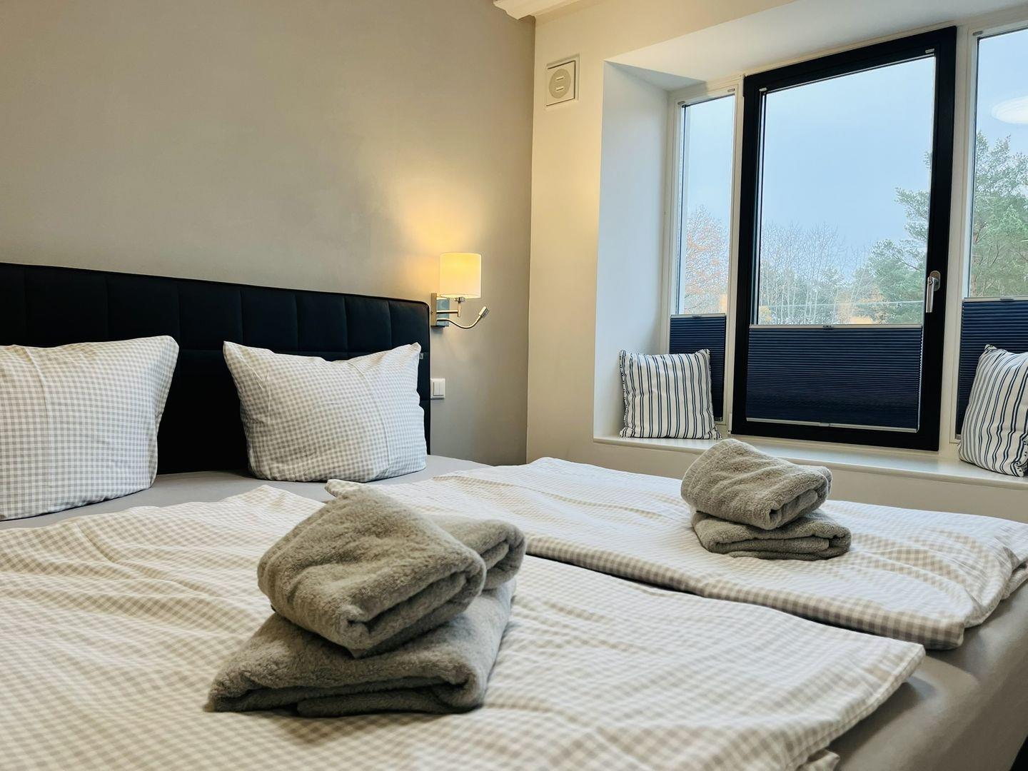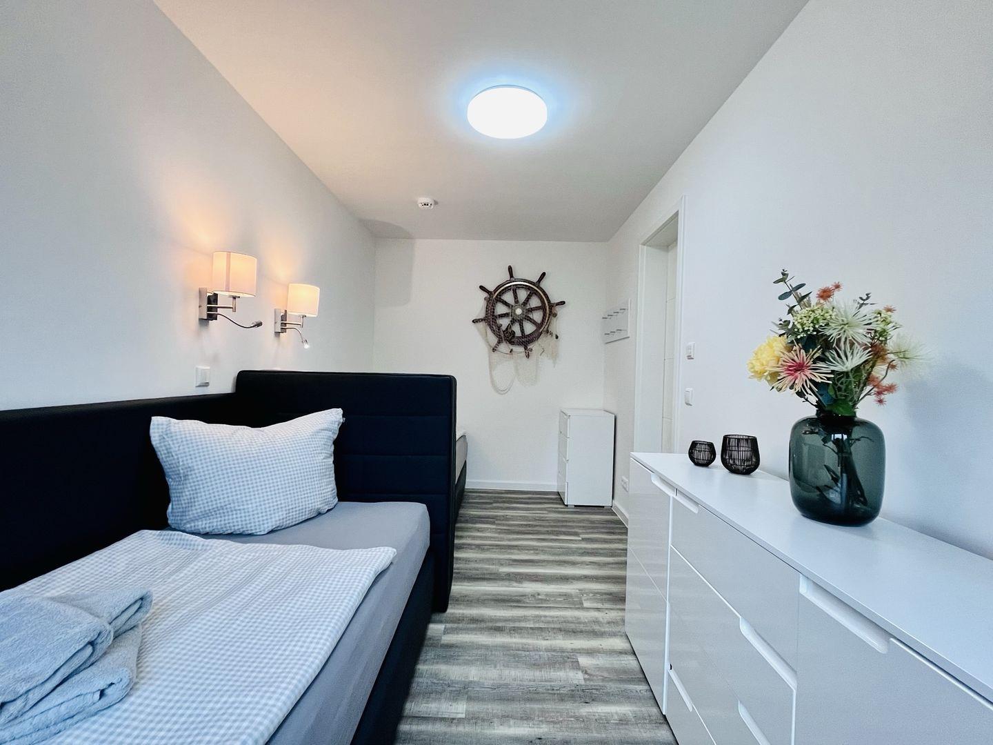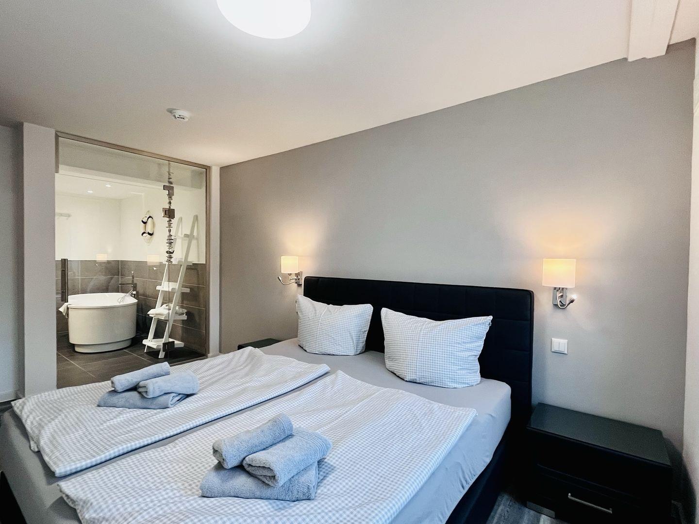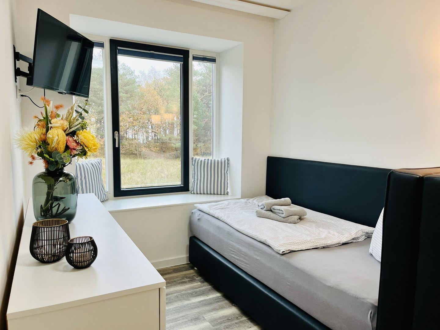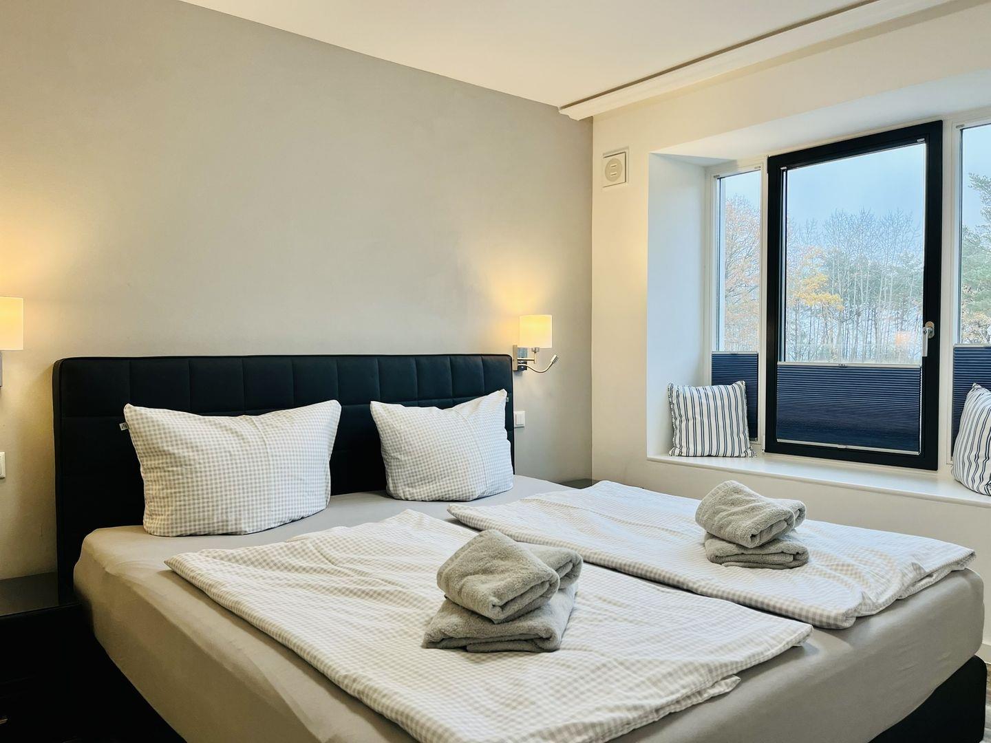 Im ersten Schlafzimmer befindet sich ein gemütlichen Boxspringbett mit Kleiderschrank, direkt daneben befindet sich, dass Bad mit Badewanne. Im zweiten Schlafbereich befinden sich zwei Boxspringeinzelbetten, ein TV mit einer Kommode. In beiden Schlafzimmern sorgen zusätzliche Verdunklungsplissees für einen erholsamen Schlaf. Ein kostenloser Parkplatz steht Ihnen am Haus ebenfalls zur Verfügung.