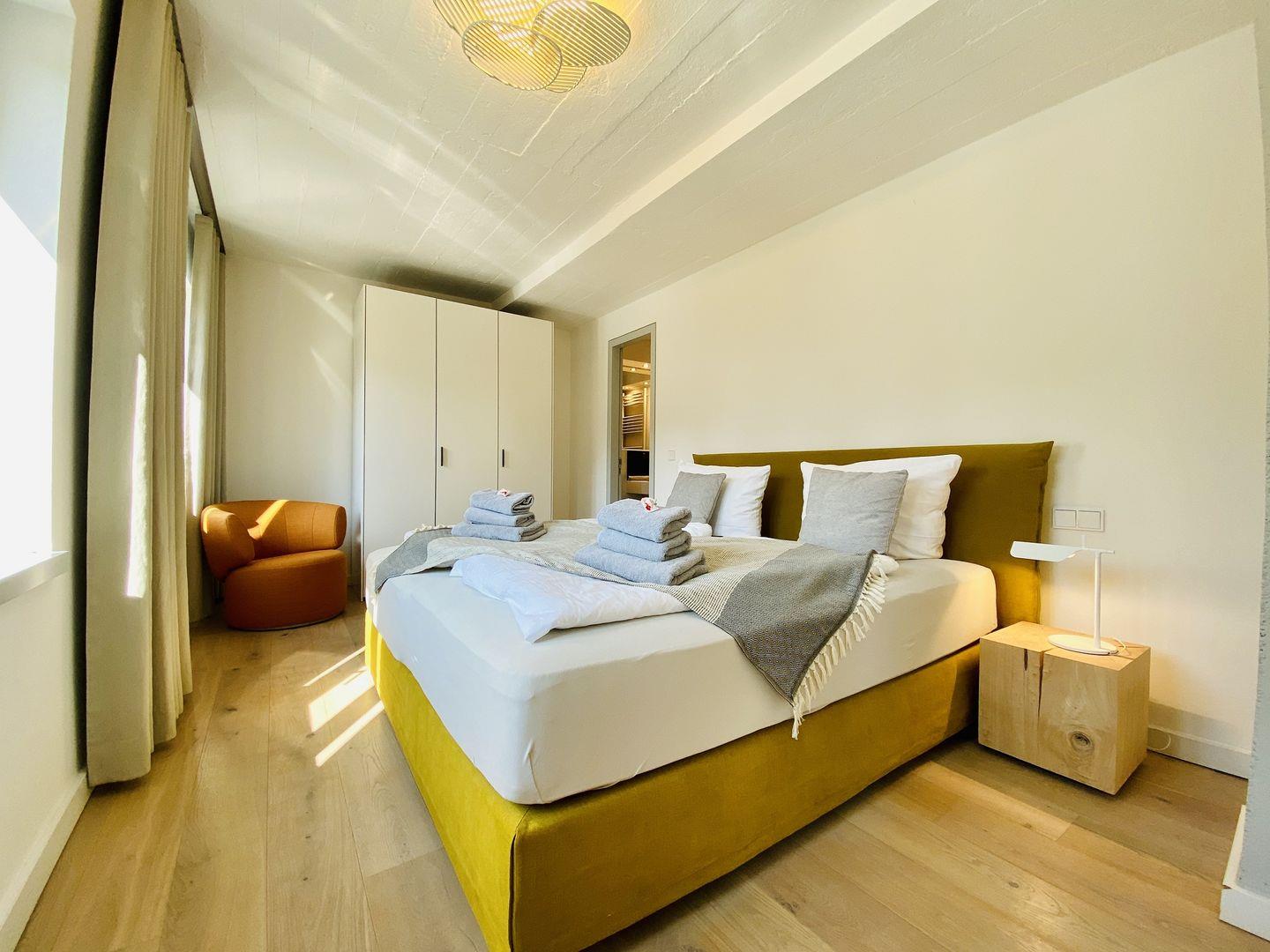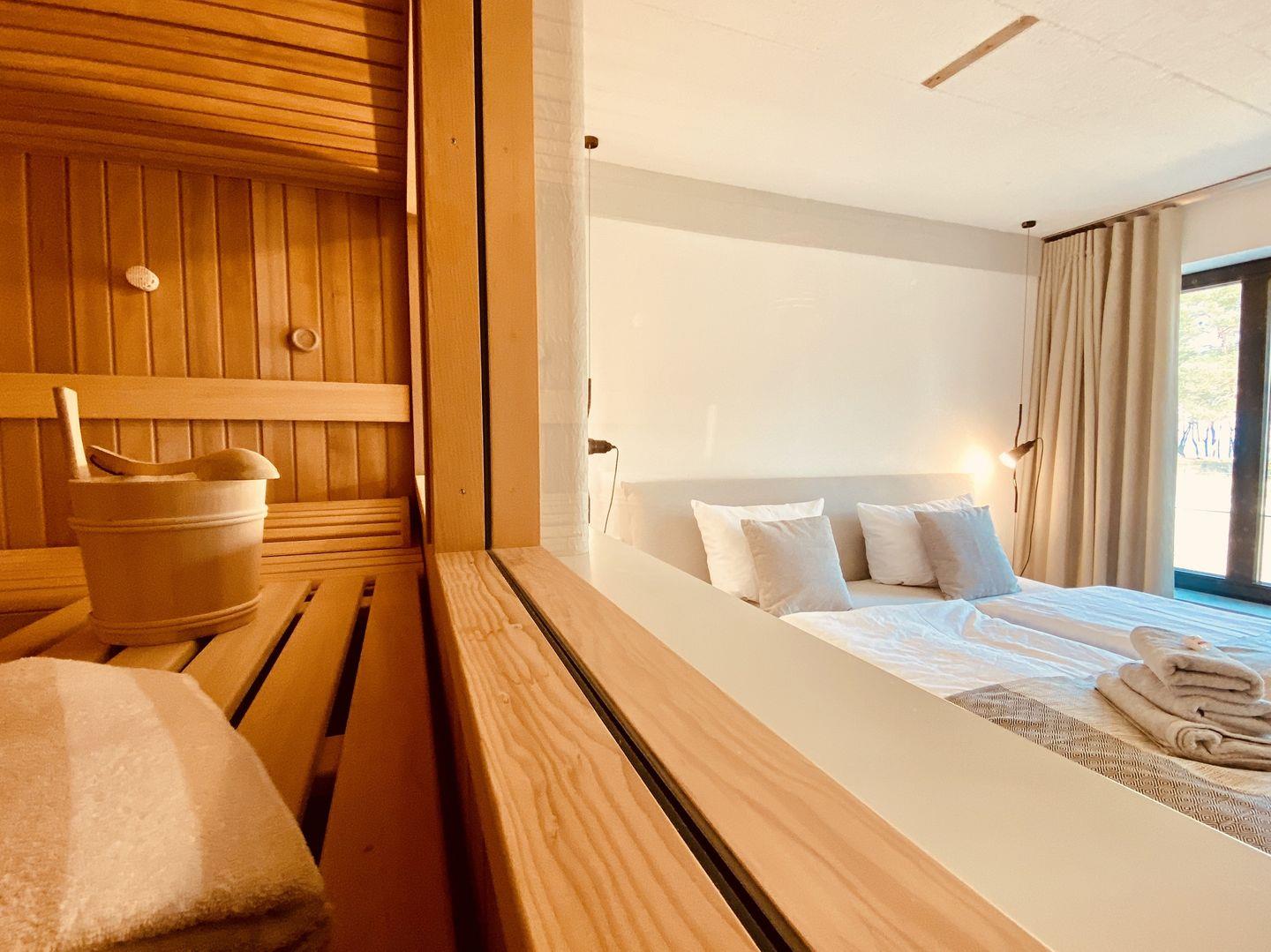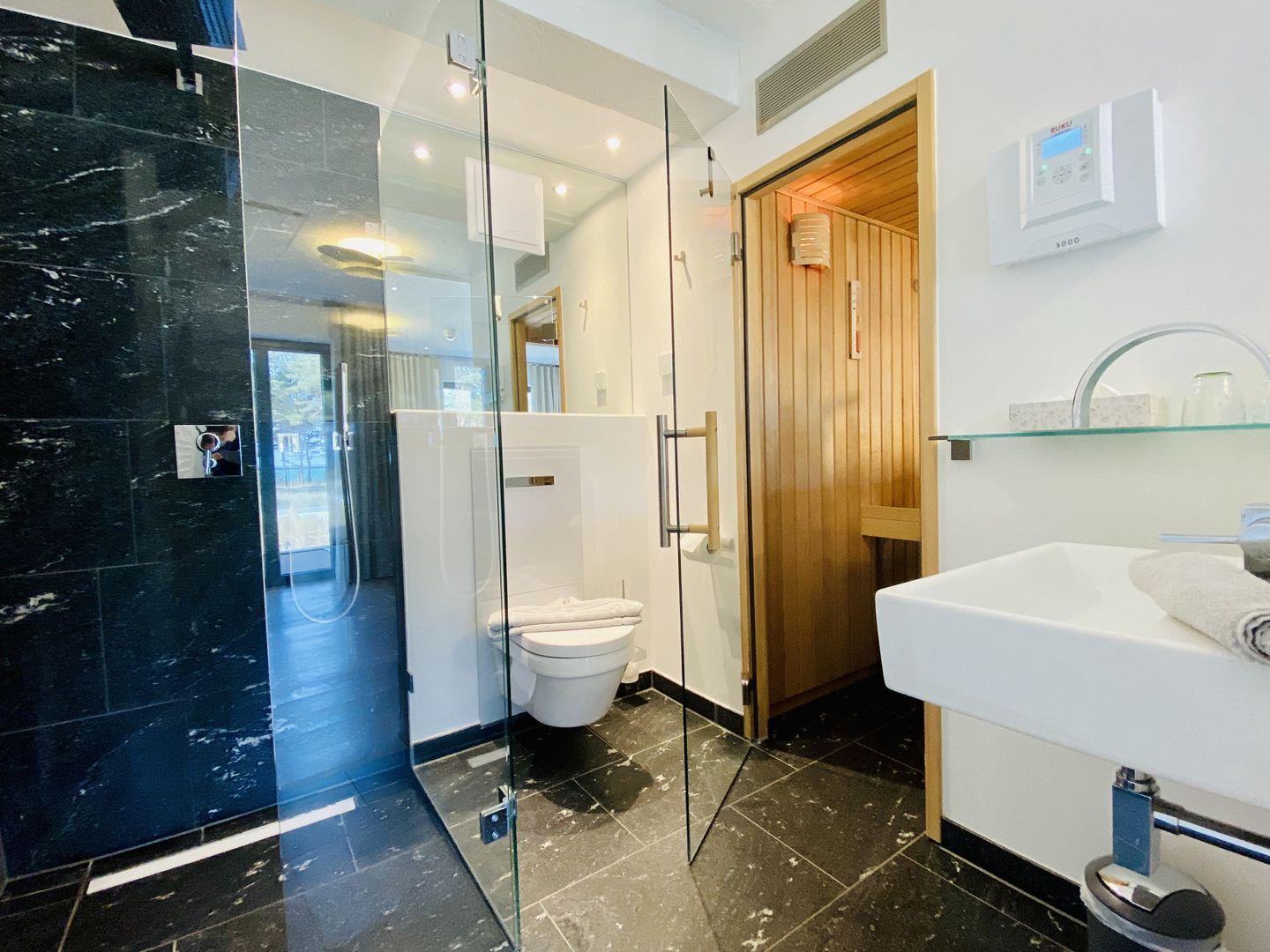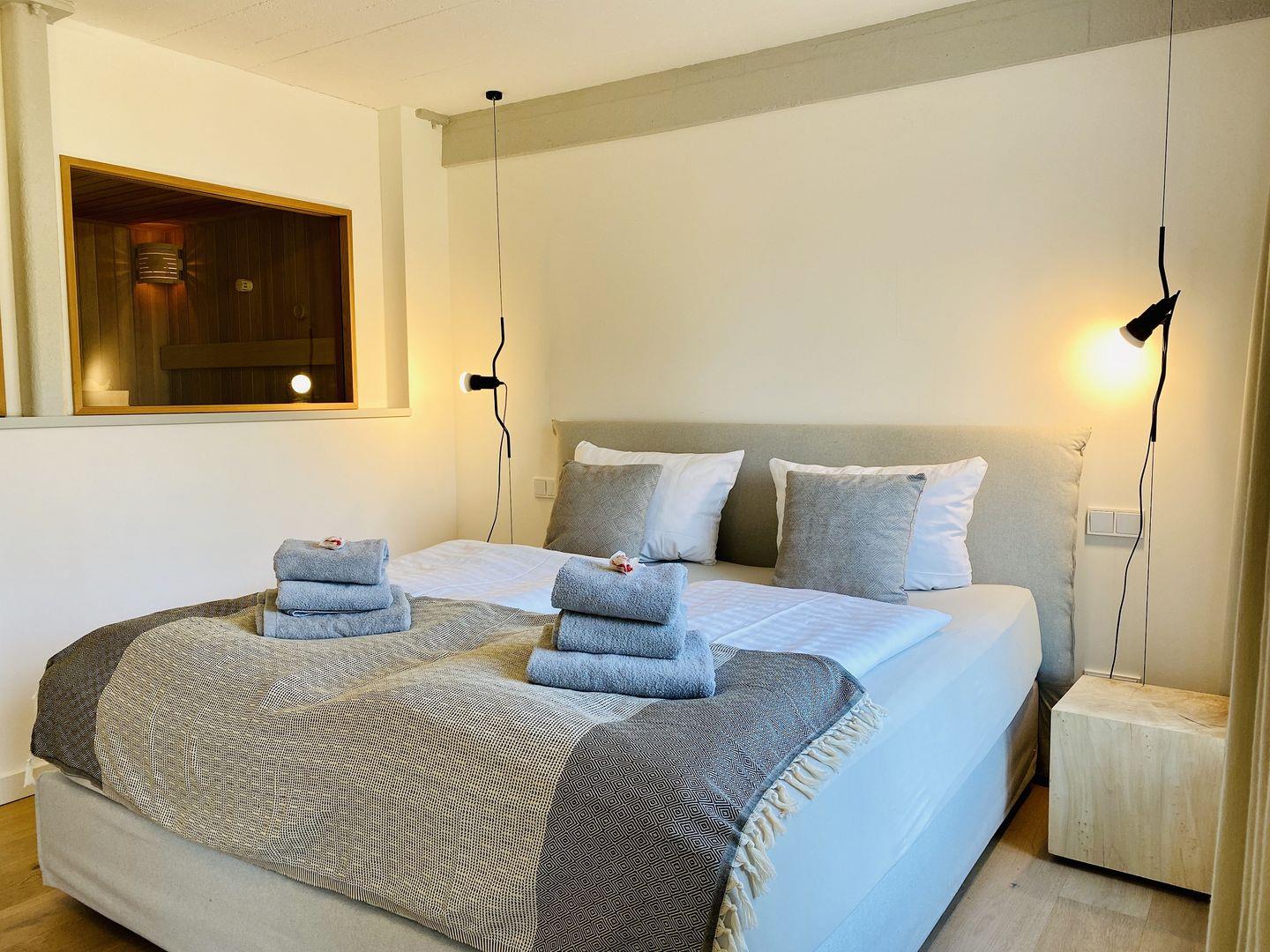Beide Schlafzimmer versprechen erholsame und entspannende Nächte. In den großen Boxspringdoppelbetten der Marke Schramm wird das Schlafen zum Vergnügen. Das Seeblick-Schlafzimmer hat neben einem Flachbild-TV auch ein En-Suite Badezimmer mit ebenerdiger Regendusche, Waschtisch und WC. In diesem Masterbad wartet zudem eine kleine Wellness-Oase darauf, Ihnen noch mehr Entspannung zu verschaffen. Eine klassische Sauna von der Firma RUKU ist der ideale Ort, sich an ungemütlichen Tagen die Zeit zu verschönern – besonders nach einem stürmischen Strandspaziergang. Auch Ablagemöglichkeiten gibt es in den Zimmern reichlich.