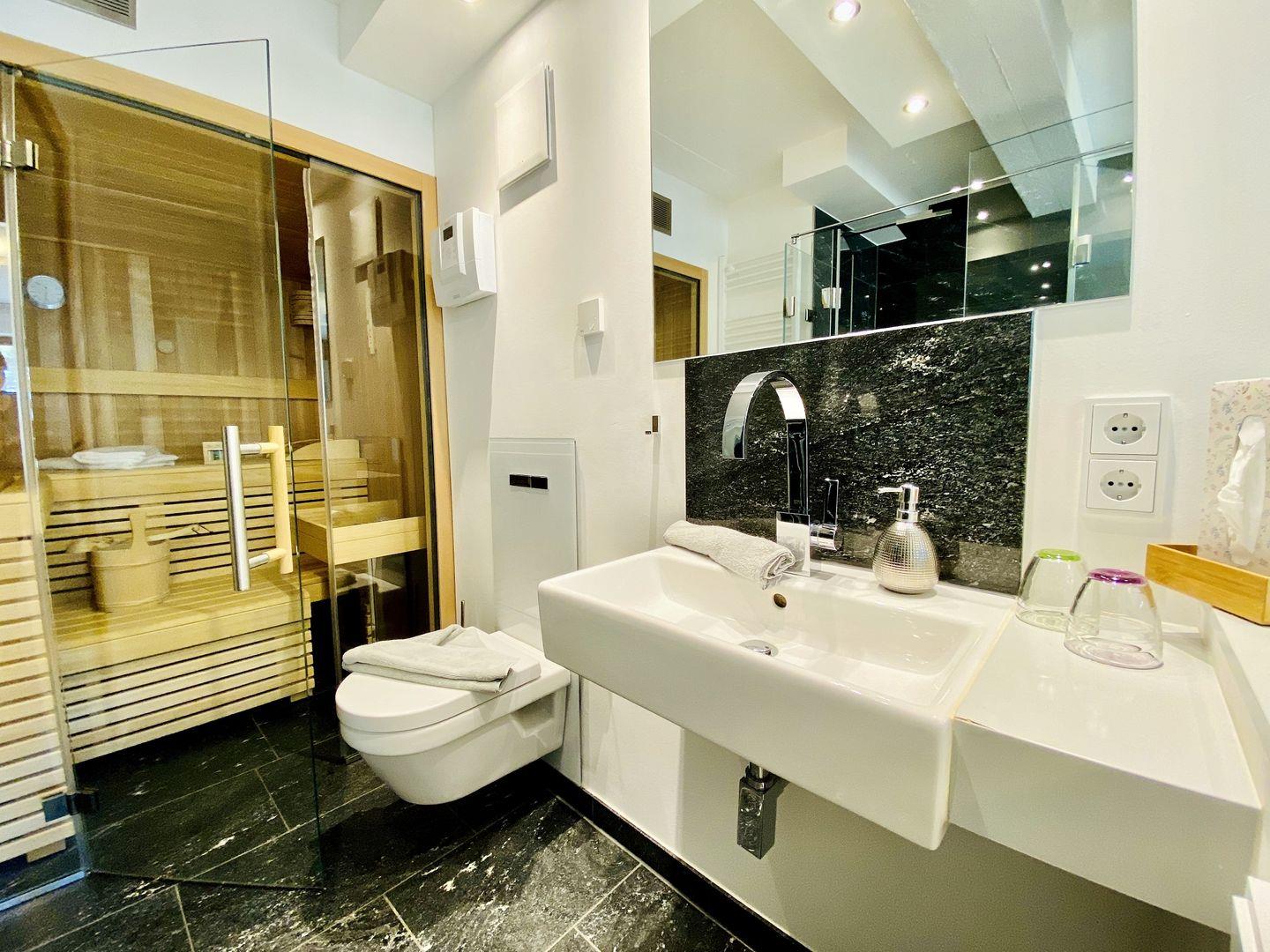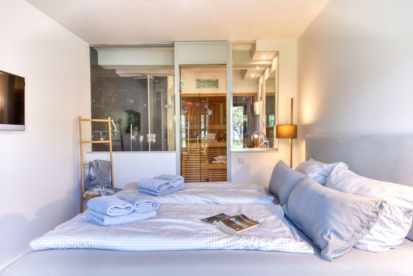 Genießen Sie entspannte Stunden in der privaten Sauna. WLAN steht Ihnen zur Verfügung, um stets in Verbindung zu bleiben, und der Sky TV-Anschluss sorgt für Unterhaltung auf höchstem Niveau.