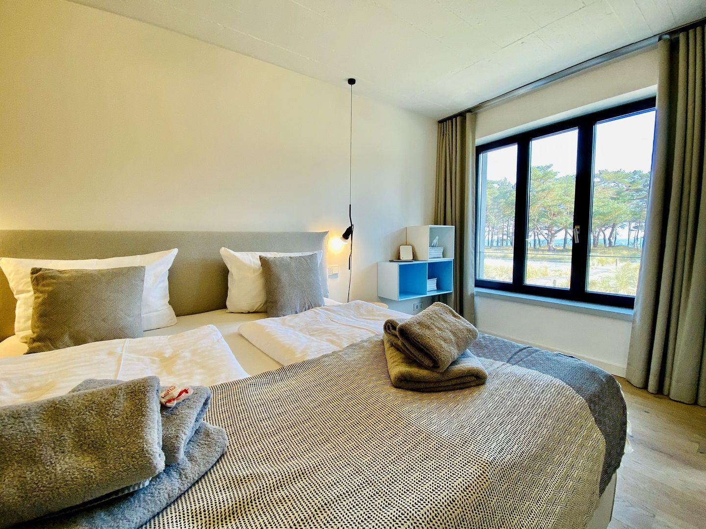 Auf großzügigen 78 m² erstreckt sich das Proraloft 6 mit einem geschmackvoll gestalteten Seeblick-Schlafzimmer und en Suite Bad. Hier finden bis zu vier Personen Platz, um in einer einladenden und stilvollen Atmosphäre zu entspannen. Große Fensterfronten lassen viel Tageslicht herein und schaffen eine helle und freundliche Wohnatmosphäre.