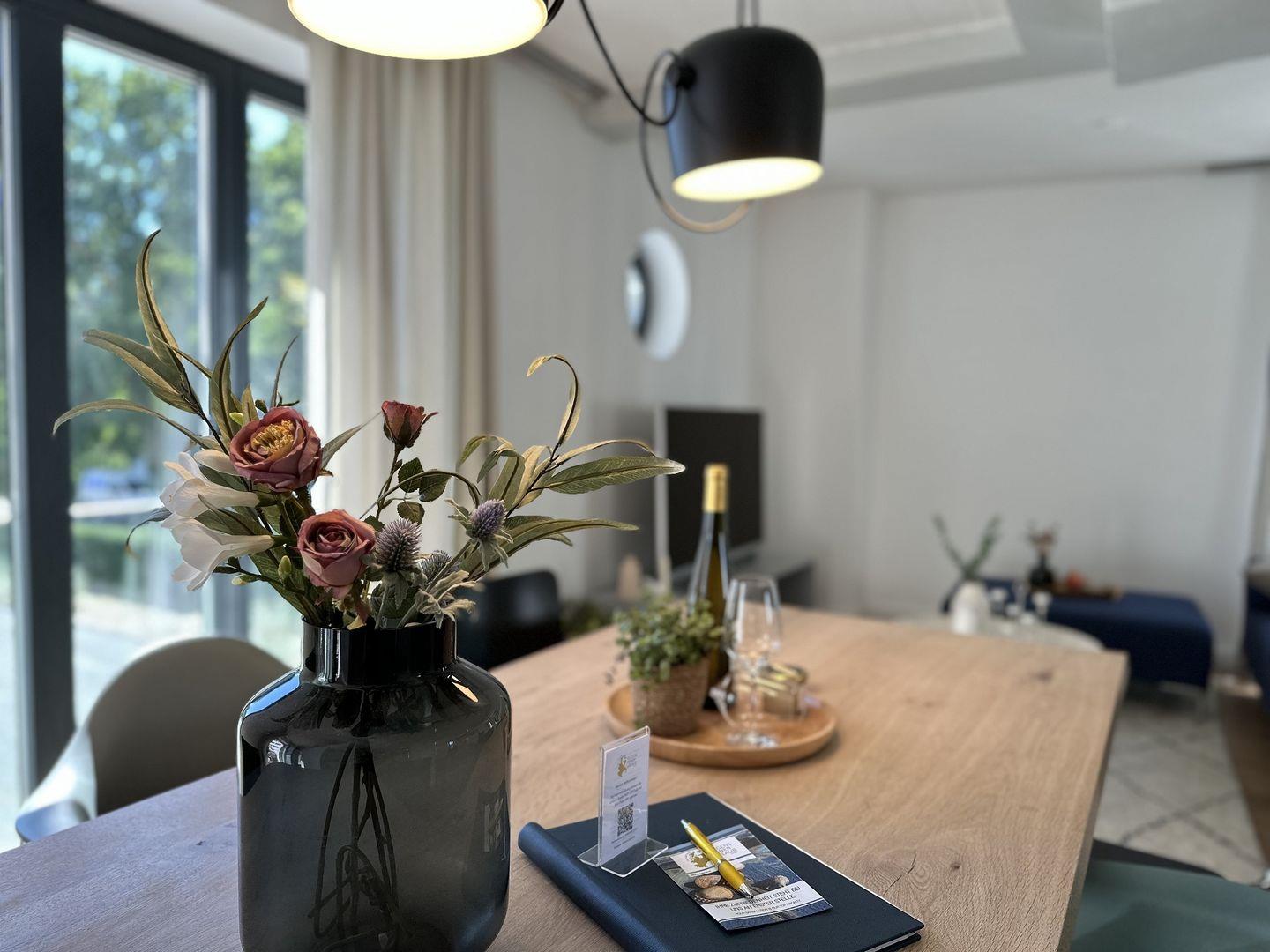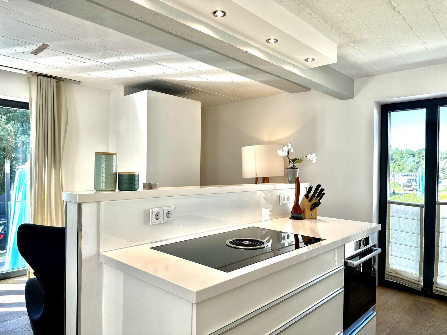 In diesem Urlaubsdomizil entspannen Sie mit allen Sinnen. In der voll ausgestatteten Küche finden Sie alles, was das Herz begehrt. Hochwertige Markengeräte von Bosch und WMF, erlesenes Geschirr – da wird das Kochen zu einem richtigen Urlaubs-Event. Essen können Sie am wunderschönen Eichenholz-Tisch auf komfortablen Lederstühlen. Für Kaffeeliebhaber bietet die Küche eine Kaffeefiltermaschine und eine Nespressomaschine inklusive einiger Starter-Kapseln für den ersten Kaffeegenuss am Anreisetag.