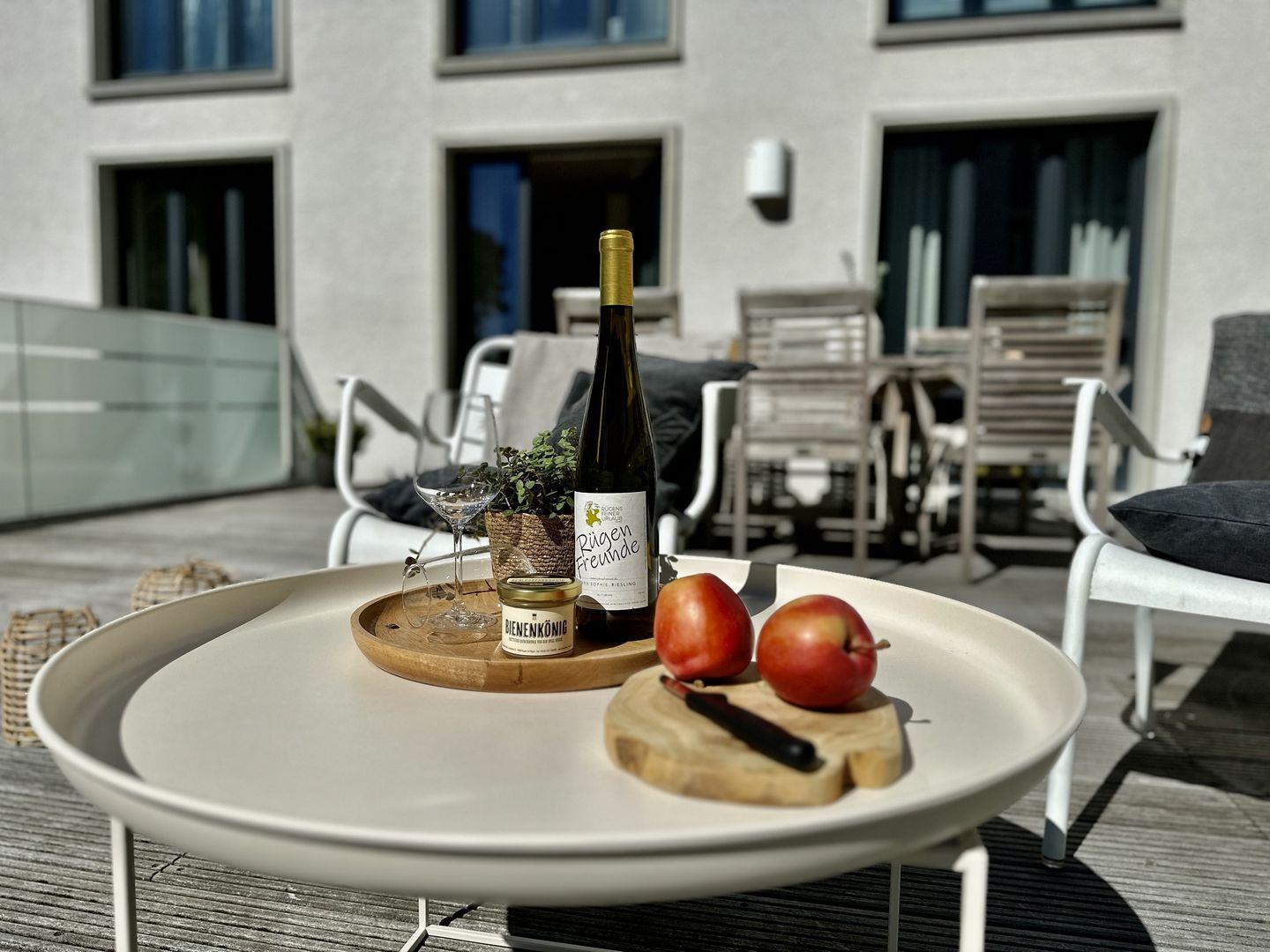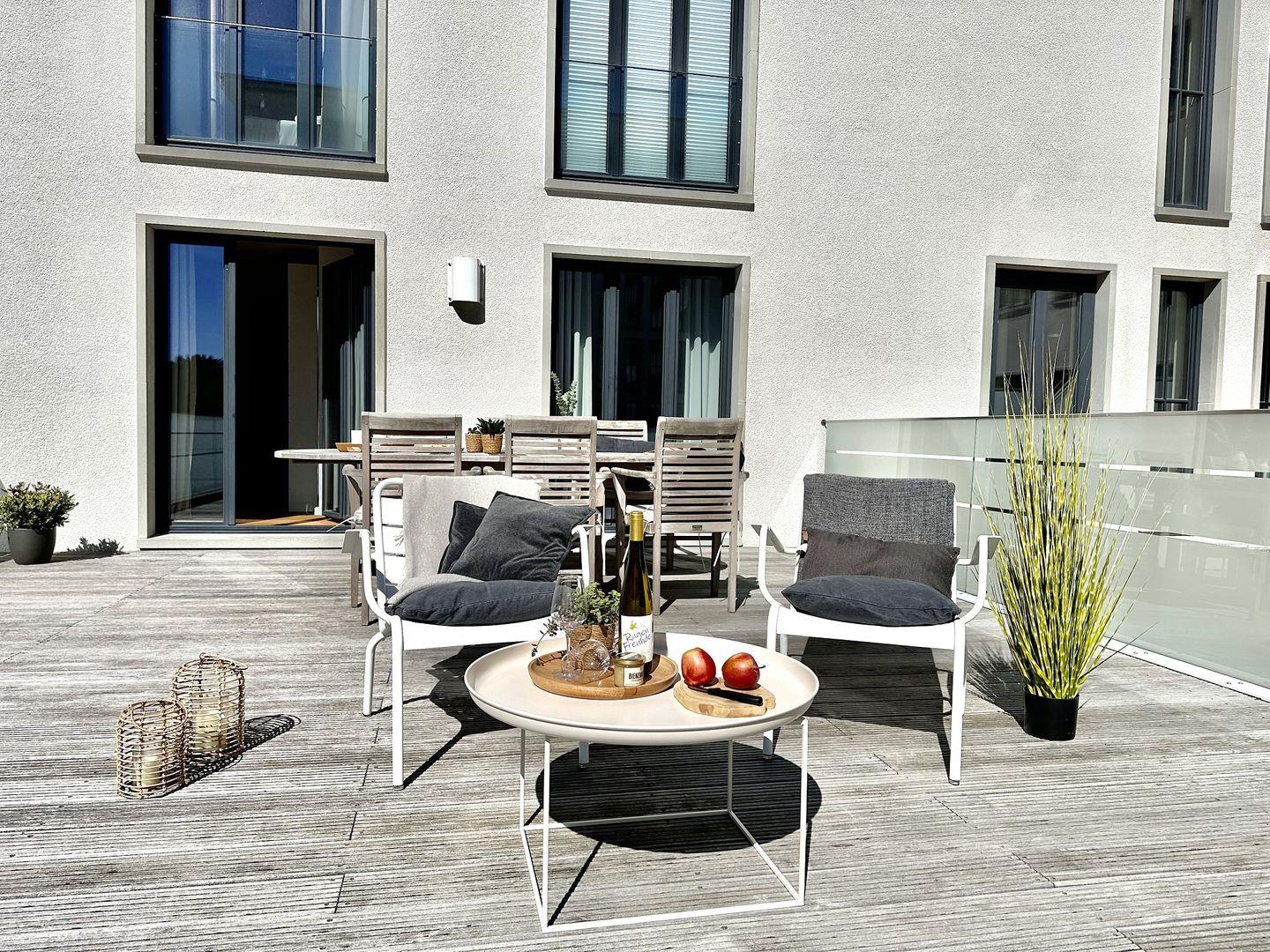 Die Wohnung besticht nicht nur durch ihre stilvolle Einrichtung, sondern auch durch besondere Extras: Ein eigener Gas-Kamin schafft eine behagliche Atmosphäre, perfekt für gemütliche Abende. Die Sauna, ein Ort der Ruhe und Erholung, lädt zum Entspannen nach einem erlebnisreichen Tag an der Ostsee ein. In der warmen Jahreszeit können Sie zudem den saisonalen Pool genießen, der für erfrischende Momente sorgt.