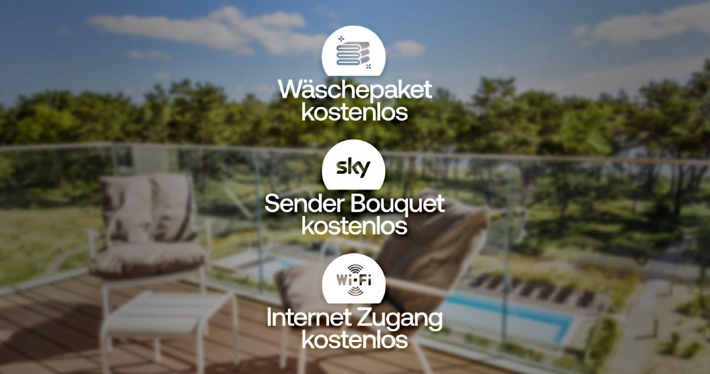 Das WLAN ist kostenfrei und im 2. Obergeschoss des Hauses gibt es einen Waschmaschinen- und Trocknerraum zur kostenlosen Nutzung durch Gäste des Hauses. Außerdem sind für Ihre Autos zwei kostenfreie Stellplätze im Parkhaus reserviert und Sie können viele SKY Sender kostenfrei auf dem Wohnzimmer Fernseher schauen. In den Sommermonaten stehen Ihnen der unbeheizte Pool vor dem Haus, Sonnenliegen am Pool und ein Strandkorb direkt am Strandabschnitt vor dem Haus zur Verfügung. Ein Gäste-WC ist vom Wohnzimmer aus zugänglich. Gönnen Sie sich Luxus pur in Düne7: Die wohnungseigene Sauna lädt dazu ein, nach einem erlebnisreichen Tag zu entspannen und die wohlige Wärme zu genießen. Der Gas-Kamin sorgt für wohlige Wärme in der Wohnung.