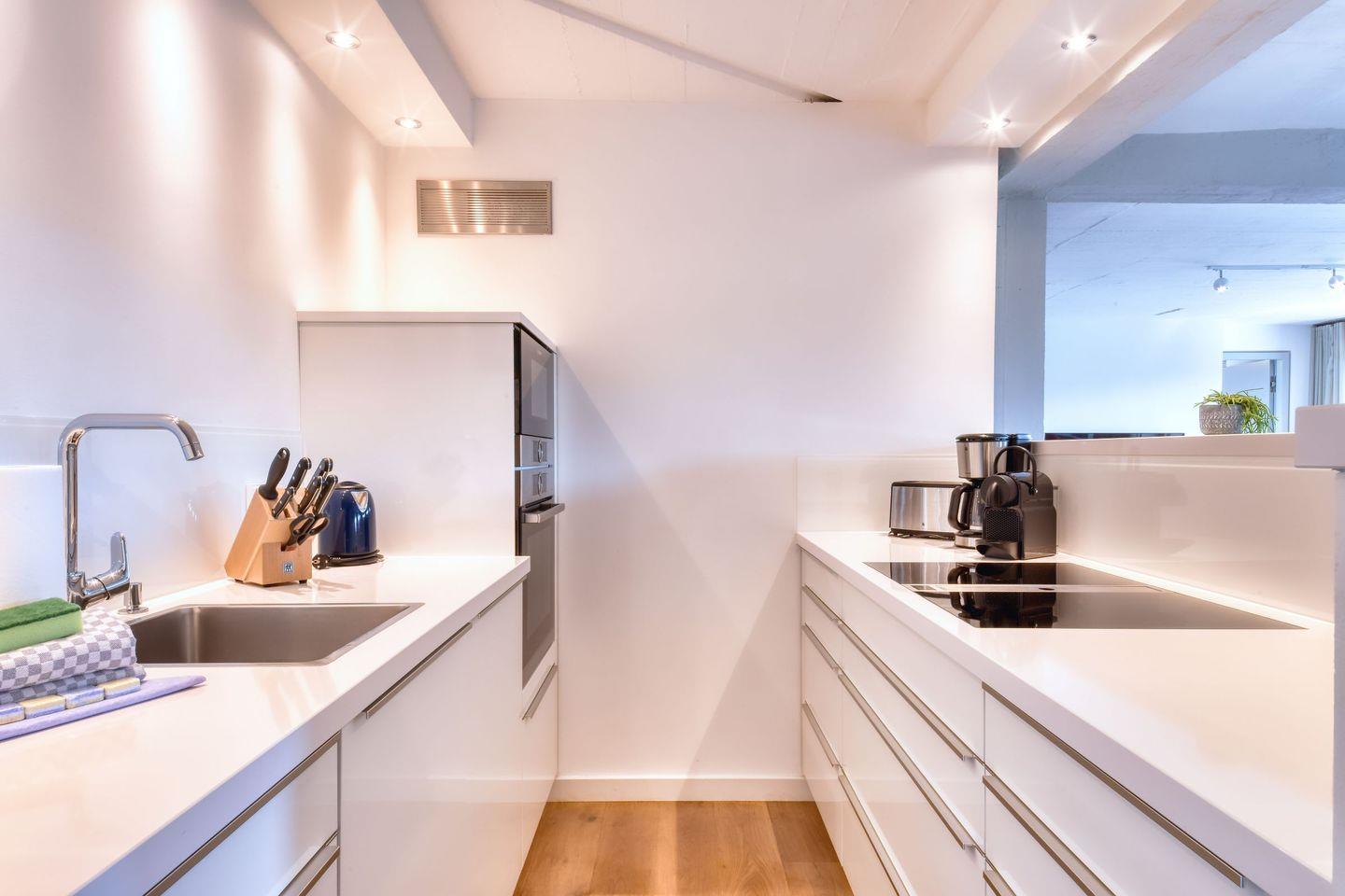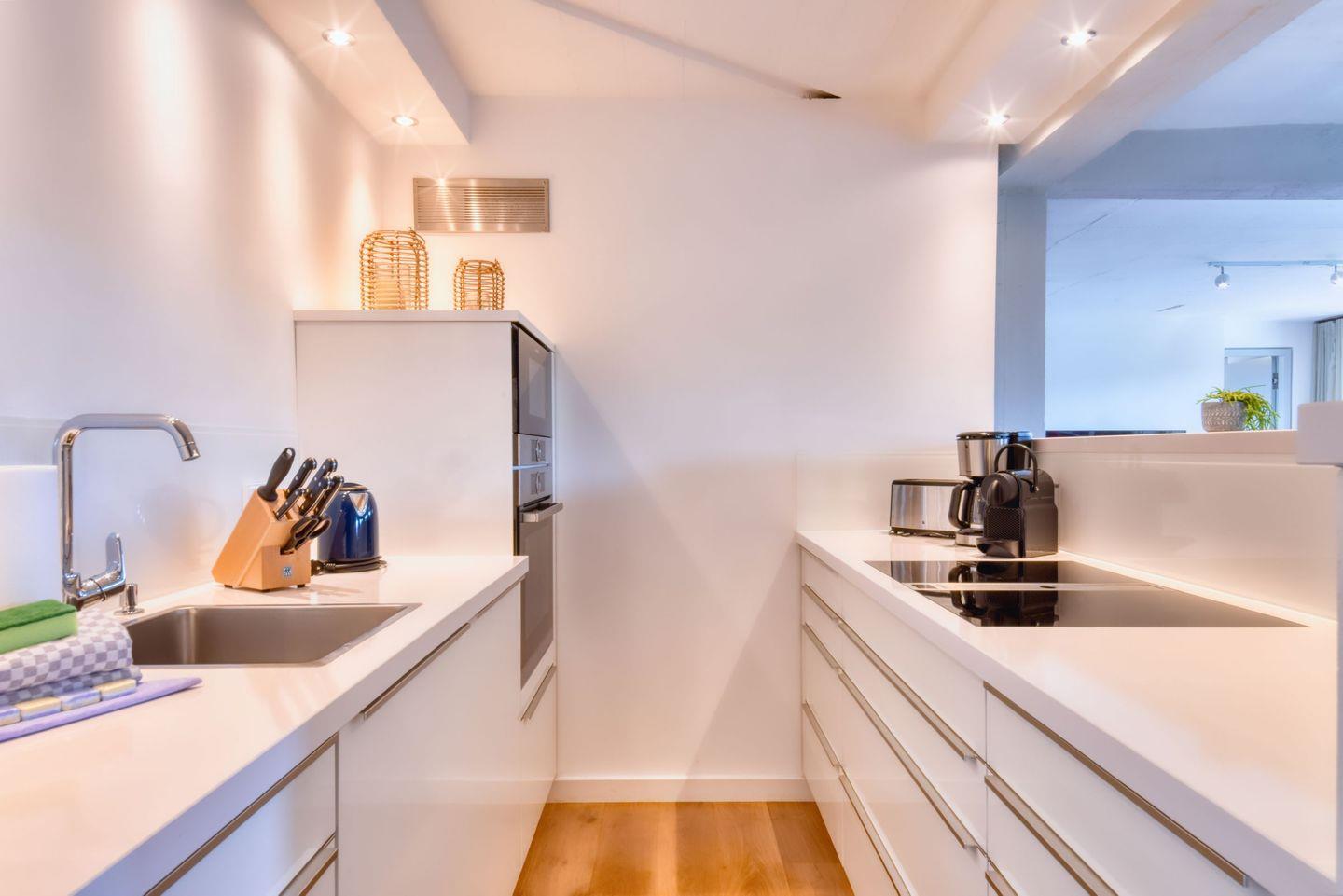 Der Fahrstuhl bringt Sie direkt in die vierte Etage der Düne 7. Ein wunderschönes und großzügiges Meerblick-Appartement in stilvollem Design wartet hier auf Sie. Auf 150 m² können es sich bis zu 6 Personen und ein Kind richtig gut gehen lassen, gemeinsam den Urlaub genießen und eine unvergesslich schöne Zeit auf der Insel Rügen verbringen. Die Einrichtung der 4-Raum-Wohnung besticht durch ihre schlichte und moderne Eleganz. Nordisches Design und dezente Accessoires vermitteln Wohnlichkeit, die jeden Gedanken an Stress vergessen lässt. Die offene und helle Wohnungsdecke ist im Stil der Vergangenheit belassen und etwas ganz Besonderes. Das große Wohnzimmer hat bodentiefe Balkonfenster Richtung Meer, die viel Licht ins Innere der Ferienwohnung lassen. Ein stylischer Gas-Kamin sorgt für Wärme und kuschelige Behaglichkeit. Auf dem gemütlichen Dreisitzer-Sofa und in den beiden bequemen Sesseln haben Sie beste Plätze für ruhige Abende und beruhigende Blicke durch die Kiefernschonung hindurch auf den hauseigenen Pool, den Strand und das Meer. Treten Sie hinaus auf den Balkon und genießen Sie den Blick auf die Ostsee und lauschen Sie dem Toben der Wellen und den Schreien der Möwen. In diesem Urlaubsdomizil entspannen Sie mit allen Sinnen. In der voll ausgestatteten Küche finden Sie alles, was das Herz begehrt. Hochwertige Markengeräte von Bosch und WMF, erlesenes Geschirr – da wird das Kochen zu einem richtigen Urlaubs-Event. Essen können Sie am wunderschönen, filigranen weißen Tisch auf komfortablen Lederstühlen. Für Kaffeeliebhaber bietet die Küche eine Kaffeefiltermaschine und eine Nespressomaschine inklusive einiger Starter-Kapseln für den ersten Kaffeegenuss am Anreisetag..