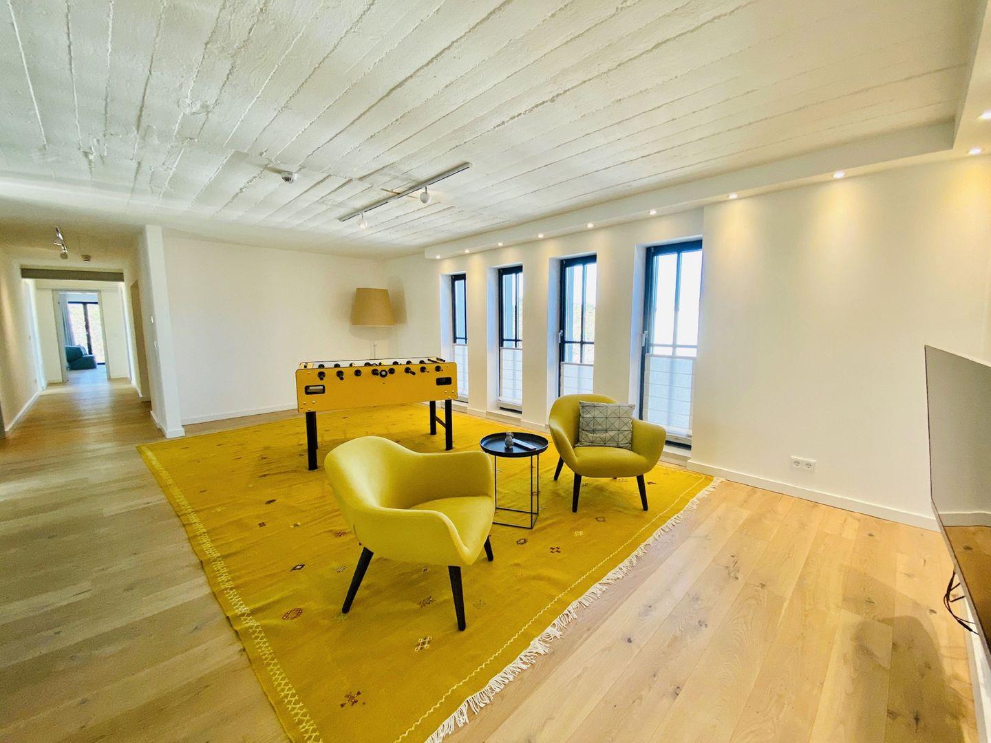 Fünf Schlafzimmer, ein riesiger Wohnbereich und eine Dachterrasse, die den Blick grenzenlos über das Ostseeblau schweifen lässt... das Penthouse 17 im Haus Prora Düne 7 in der 5. Etage entlockt einem paradiesische Urlaubsgefühle! Auf 345 m² wird der Rügenbesuch zu einer luxuriös entspannenden Auszeit. Modernster Wohnkomfort, Großzügigkeit und Designerambiente zeichnen diese Ferienwohnung der Spitzenklasse aus. Hier ist es einfach sonniger, schöner und geräumiger als in anderen Urlaubsdomizilen.