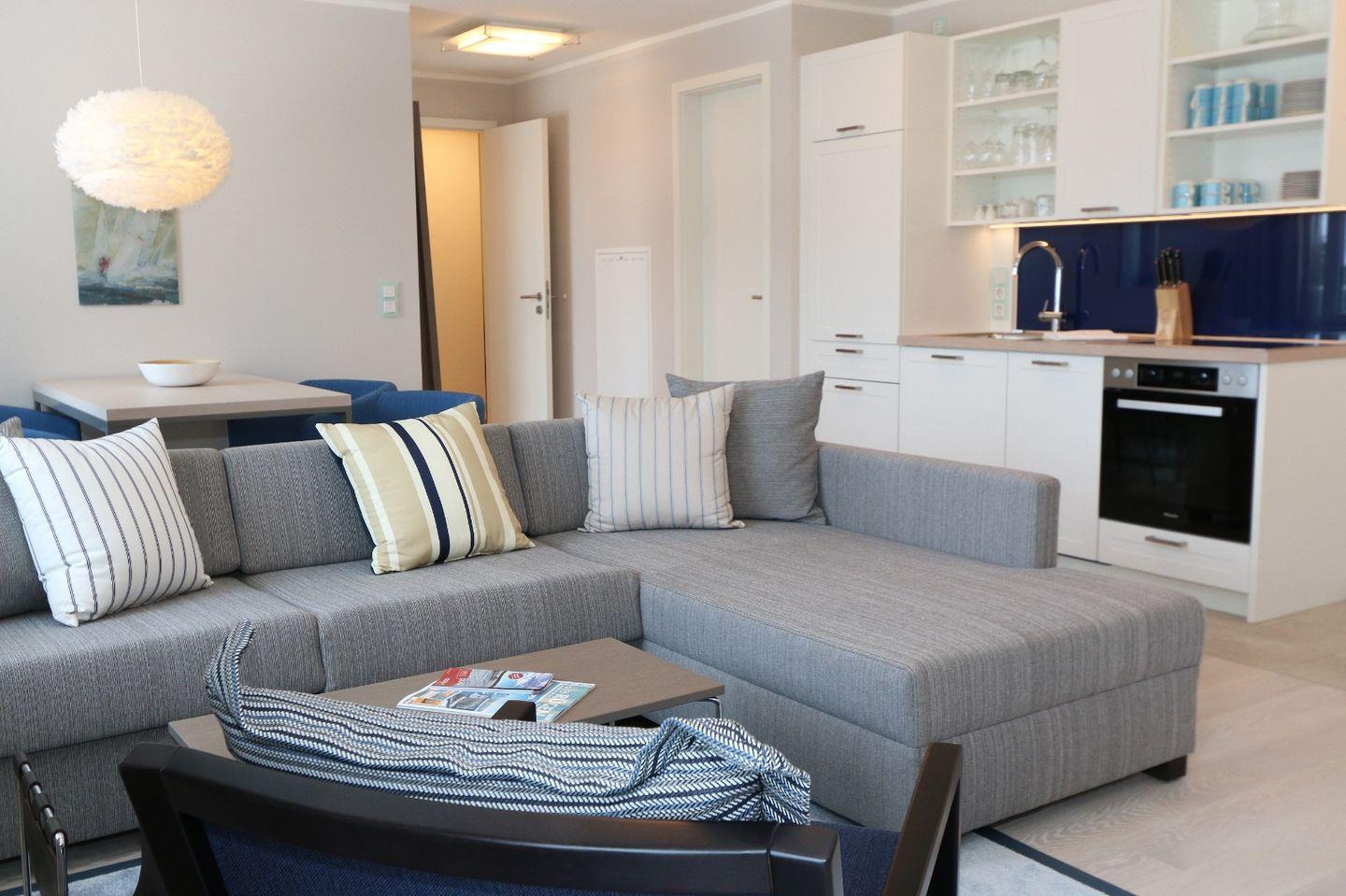 In der Ferienwohnung „Meerzeit“ im Block 1, Südstrand 108 beginnt der Urlaub direkt am Meer. Zwei gemütliche Schlafzimmer, ein heller Wohn- und Essbereich sowie eine voll ausgestattete Küche sorgen für entspanntes Ankommen. Die möblierte Dachterrasse lädt zum Genießen der Meeresluft ein. Zwei Parkplätze, direkter Strandzugang, WLAN, Waschmaschine, Trockner und zwei Bäder – eines mit Sauna – bieten hohen Komfort. Indoor-Pool, Fitnessbereich und Sauna befinden sich im selben Haus und sind gegen Gebühr vor Ort nutzbar.