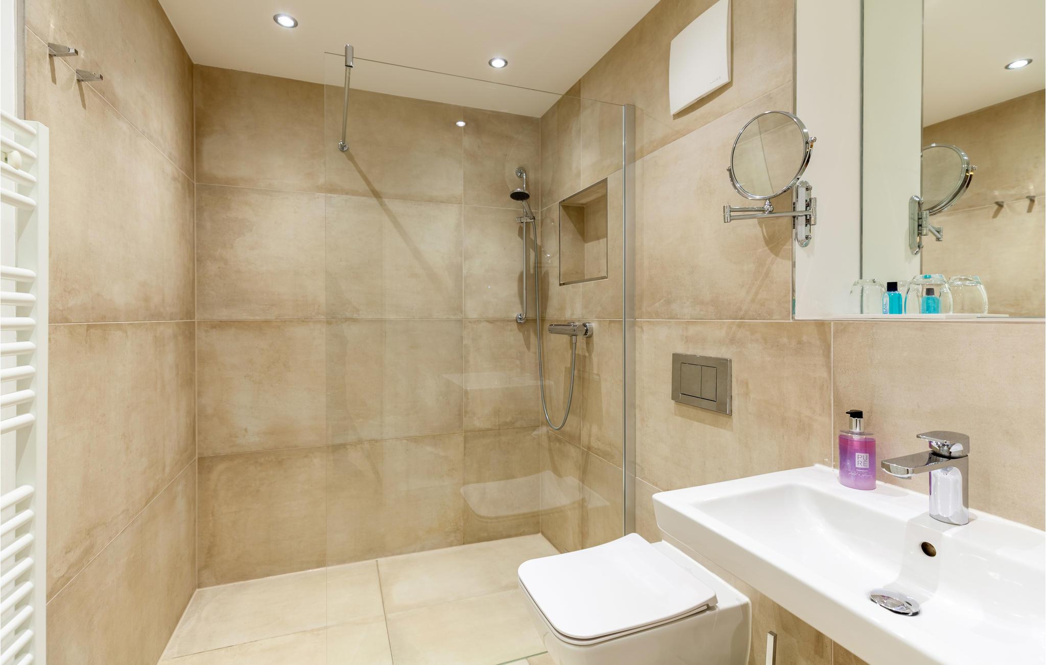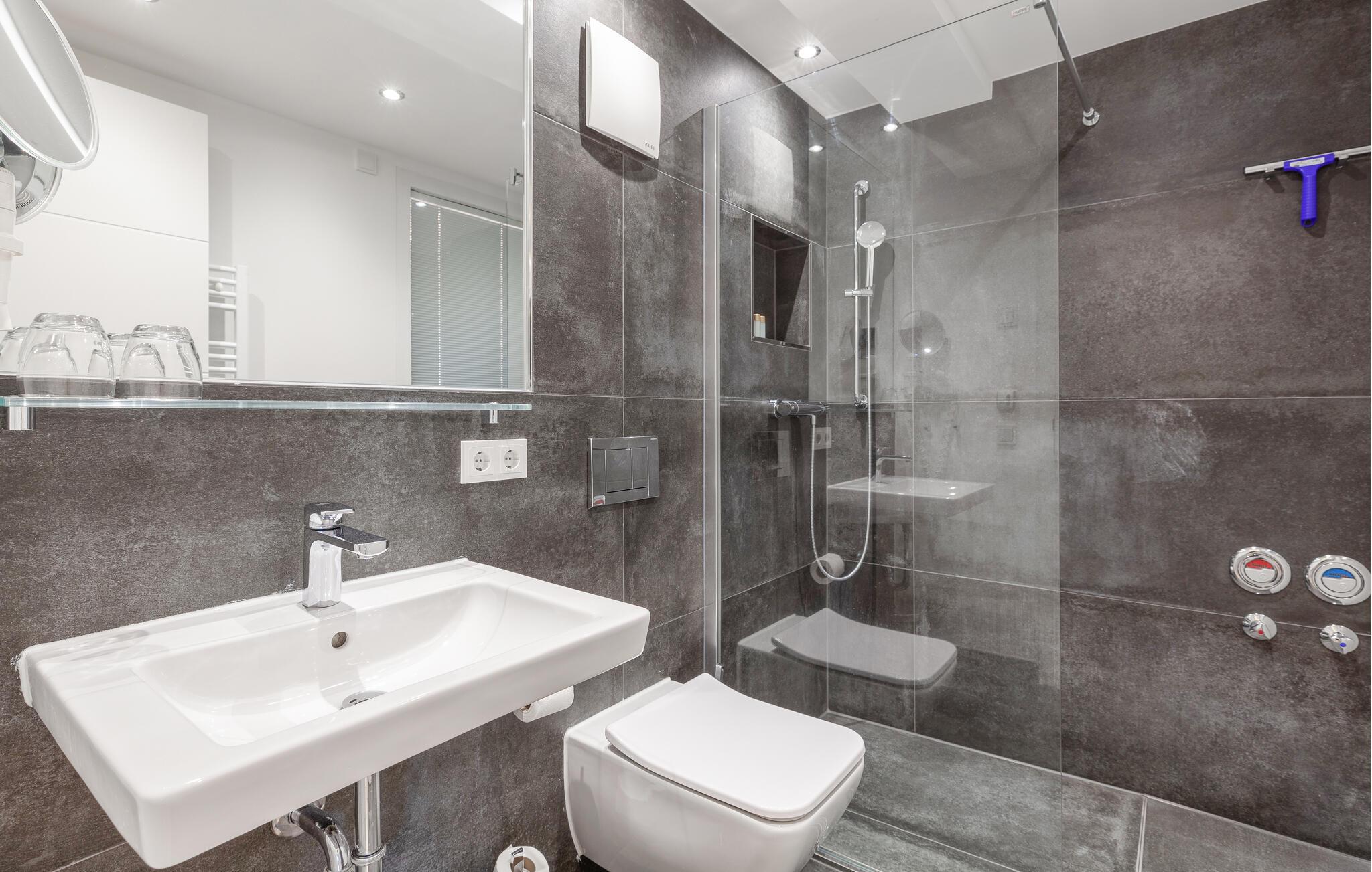 Badeværelse (nr. 1) - WC. Varmt og koldt vand. Bruser