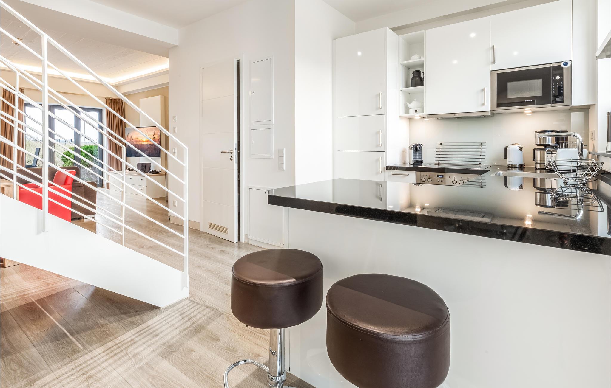 Denne ferielejlighed på to etager, stue og 1. sal, giver jer de bedste rammer til at slappe af og have det rart. Takket være den særskilte indgang nyder I her godt af særdeles god privatsfære. De eksklusive møbler er udvalgt med stor omhu, og udtrykket virker elegant og harmonisk. Intet ved indretningen er overladt til tilfældighederne, og der er lagt vægt på et godt indeklima samt allergivenlige materialer. De tre meter til loftet gør rummet ekstra rart at opholde sig i. Både på den overdækkede terrasse på 17 m² og den lille altan kan I tilbringe afslappede timer i Østersøens rare luft.