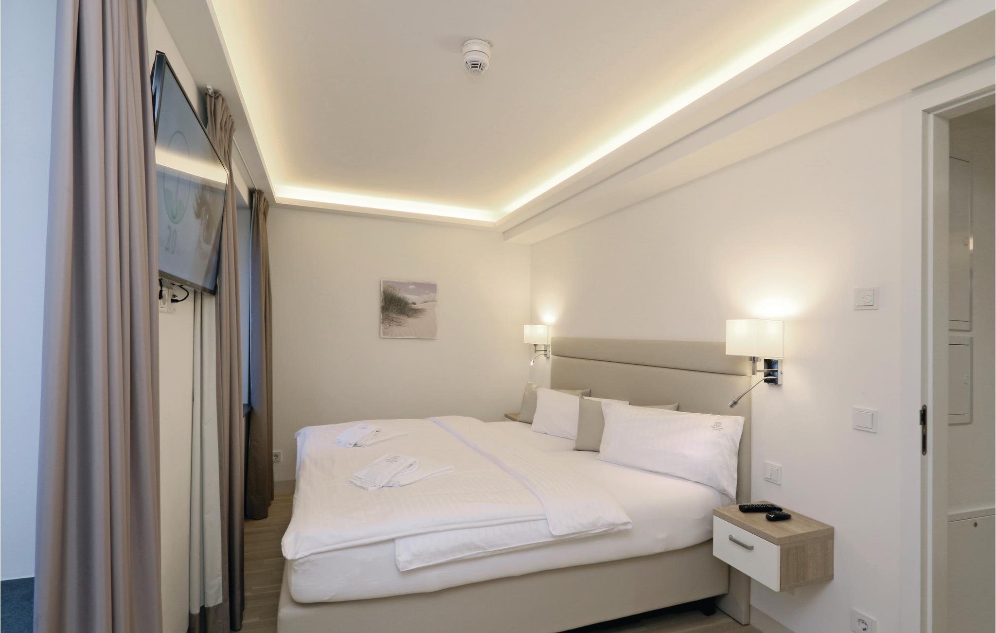 Et af Tysklands største mindesmærker er blevet forvandlet til et sandt ferieparadis. Her finder I moderne lejligheder med flot design, lige ud til den forrygende 7 km lange strand ved Prorer Wiek, hvor kridtklipperne og det glasklare vand næsten skaber følelsen af at holde ferie nede sydpå. Langs strandpromenaden er der caféer, restauranter og små butikker til jeres daglige behov. Således kan I ikke kun slappe af på jeres private terrasse med et glas vin, men også i husets egen Prora Solitaire Bar, hvor I kan drikke jeres morgenkaffe eller mødes til en drink efter en dejlig dag på stranden.