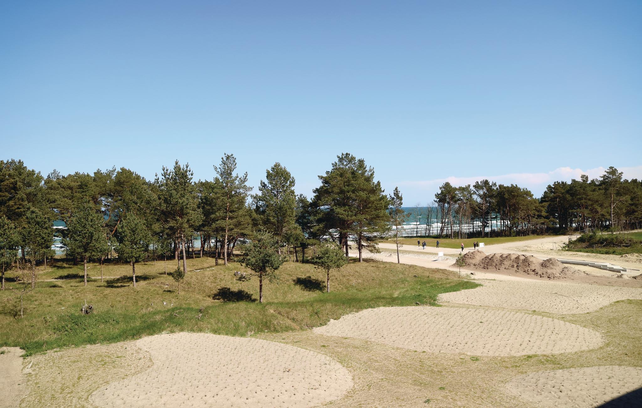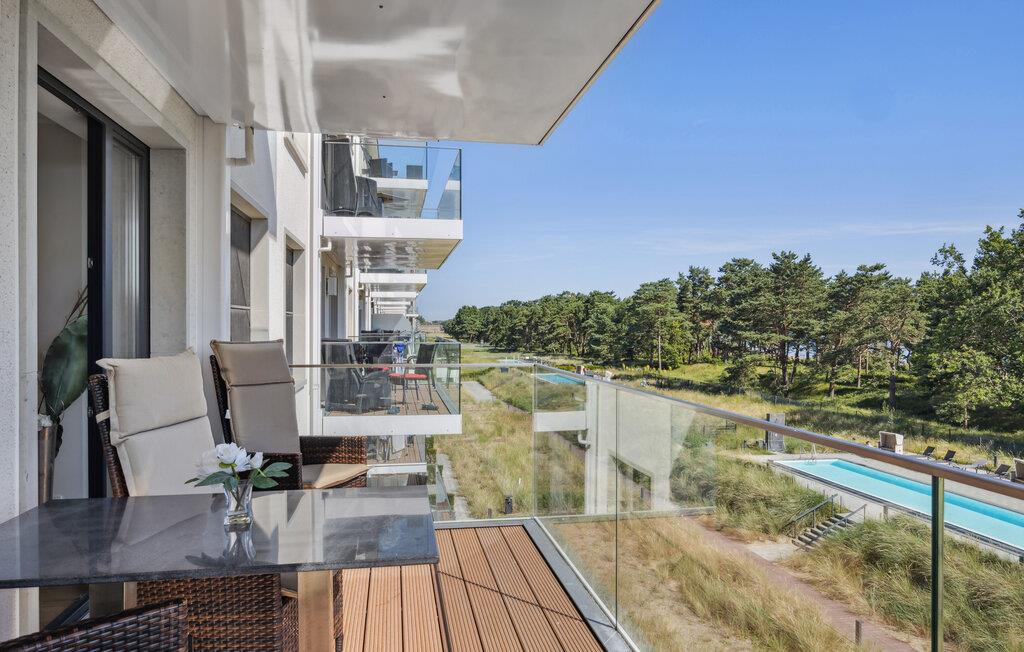 Fra den åbne stue, der er gennemstrømmet af lys, kan I træde ud på jeres private, ca. 10 m² store altan med udsigt helt til Østersøen. I kan folde sofaen ud til to komfortable sovepladser (1,40 x 2,00 m). Både i stuen og i soveværelset er der tv.