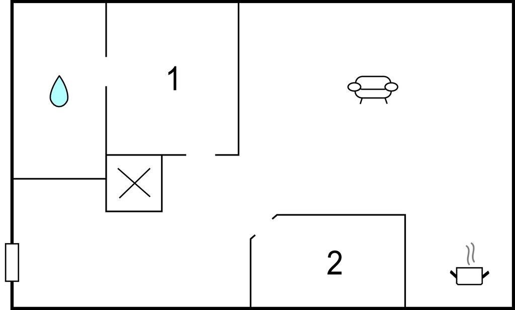 Opholdsstue/køkken - 2 Sovepladser. (Sofa, madras eller lignende).