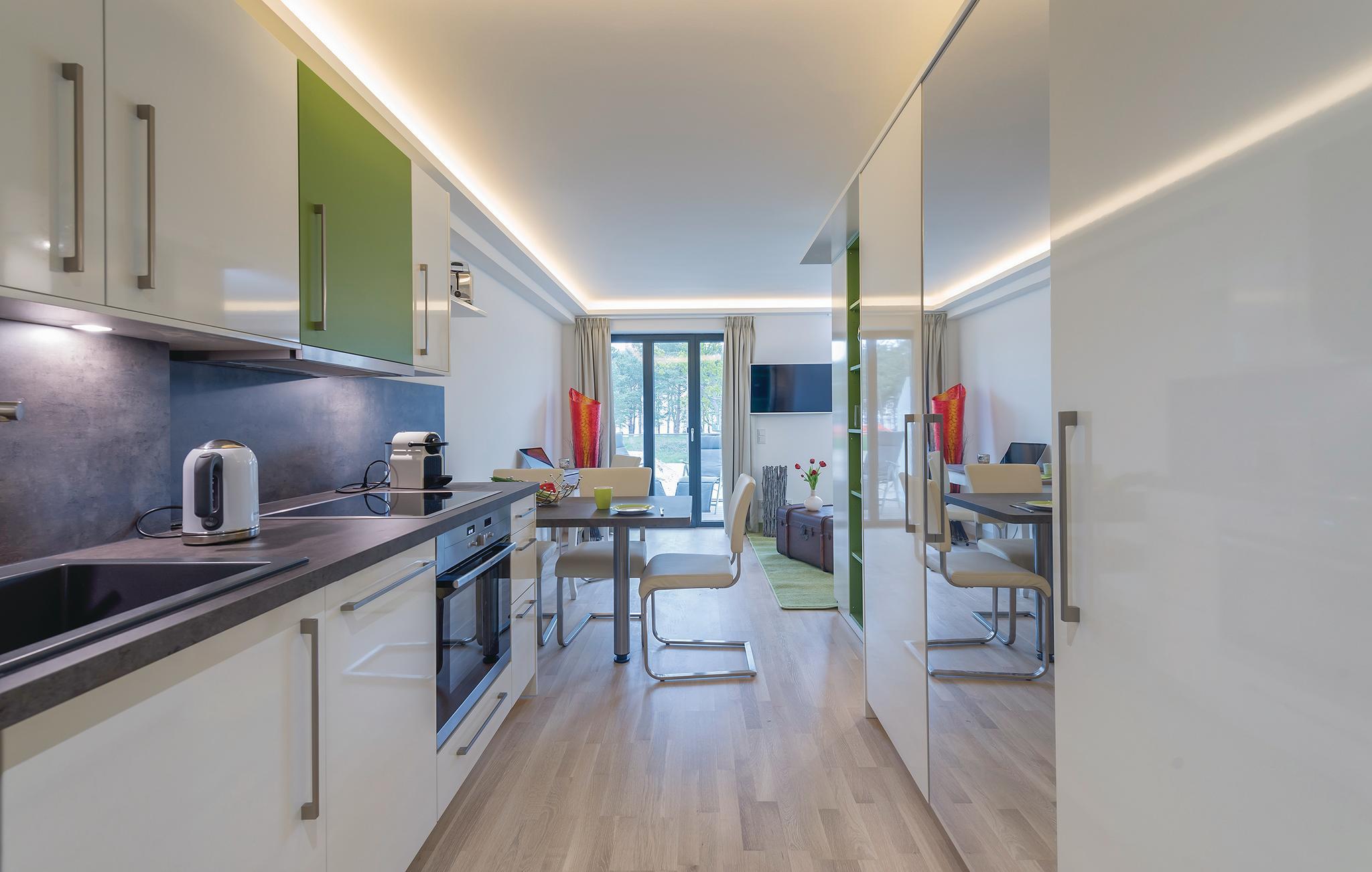 Eksklusiv ferielejlighed på ca. 40 m² i Prora Solitaire, lige ud til Østersøen. Lejlighedstype Baltic.