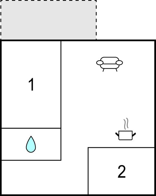 Opholdsstue/køkken - 2 Sovepladser. (Sofa, madras eller lignende).