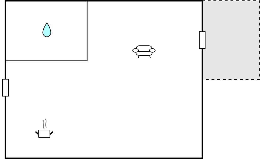 Opholdsstue/køkken - 2 Sovepladser. (Dobbeltseng(e)). 1 Soveplads. (Sofa, madras eller lignende).