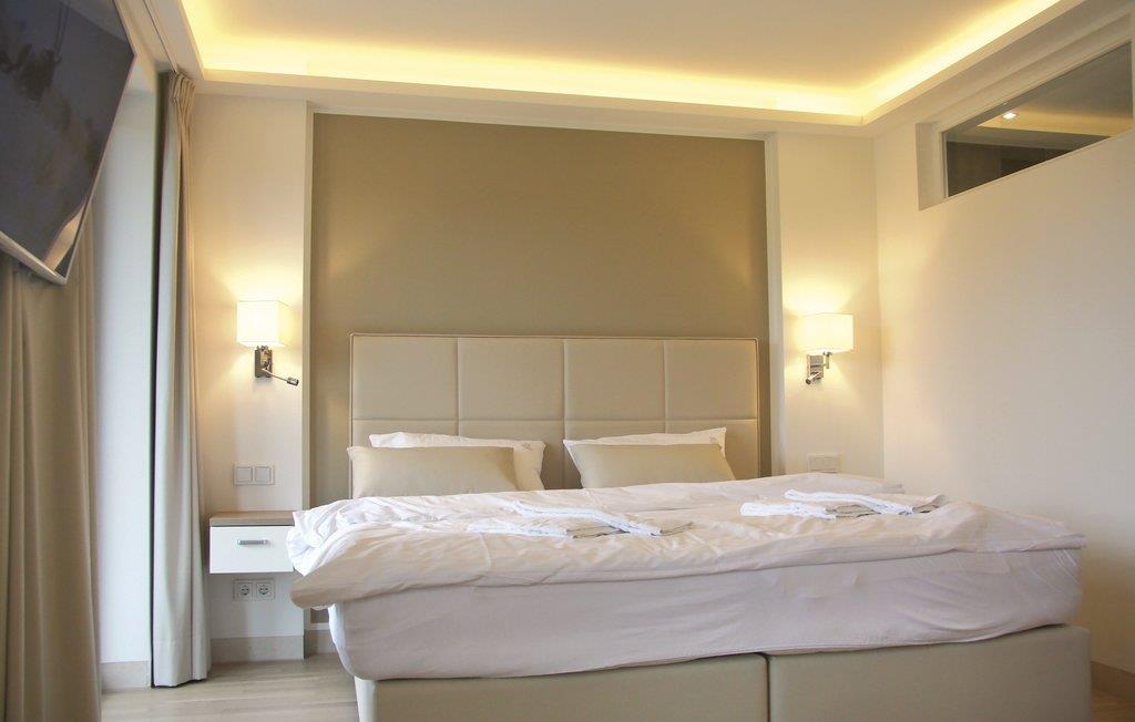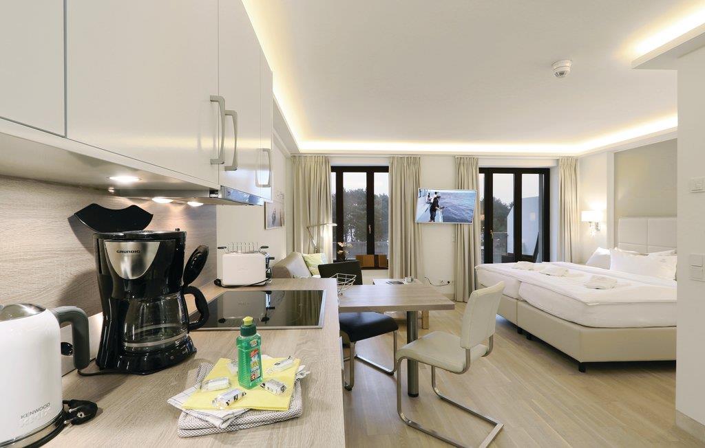 Som gæster på Prora Solitaire har I også et generøst wellnessområde til rådighed, som I på kolde dage kan nå fra jeres lejlighed uden at skulle forlade bygningen. Her er der ikke kun en stor indendørs pool med børnebassin, men også forskellige saunaer, hvileområder, fitnessområde med redskaber samt muligheden for massage og andre services, som I kan bestille i receptionen.