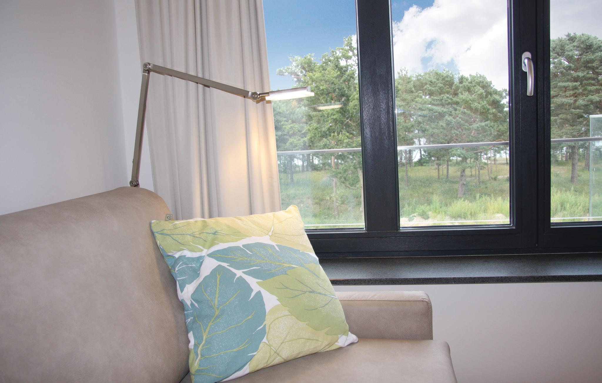 Denne lille etværelseslejlighed med stor charme er perfekt til ferie for to. Her på tredje sal er der skøn udsigt ud over parken, fyrreskoven og Østersøens glitrende bølger. Lejligheden er på 28 m² dejlige kvadratmeter, hvor I kan holde en skøn afslappet ferie meget nær havet. I kan selv lave mad i det lille køkken, men også forkæle jer selv i anlæggets cafeer og restauranter. Dog er det skønnest selv at sørge for morgenkaffen der kan nydes på lejlighedens lille balkon. De store vinduer lukker masser af sol og lys ind, den boxmadras sikrer ro om natten. Den bekvemme sofa forvandles hurtigt til et par gode sovemuligheder (1,40 cm x 2 m).