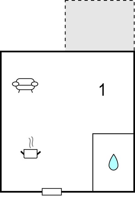 Opholdsstue/køkken - 2 Sovepladser. (Dobbeltseng(e)). 1 Soveplads. (Sofa, madras eller lignende).