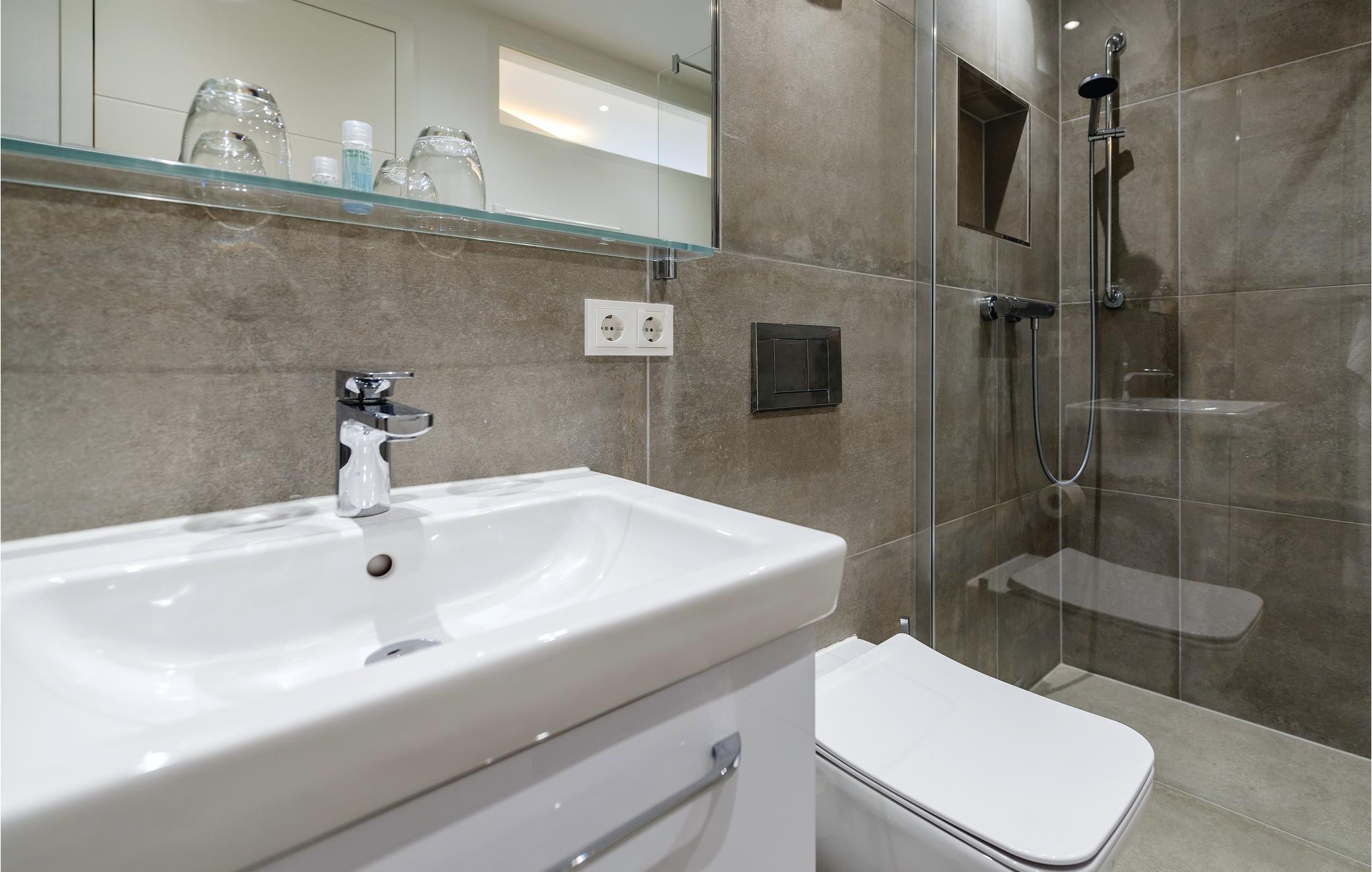 Badeværelse (nr. 1) - WC. Varmt og koldt vand. Bruser