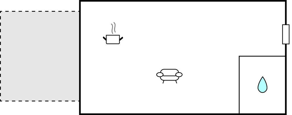 Opholdsstue/køkken - 2 Sovepladser. (Dobbeltseng(e)). 1 Soveplads. (Sofa, madras eller lignende).