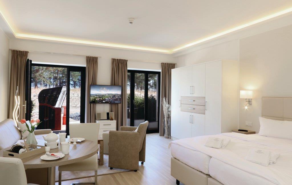 Denne eksklusive etværelseslejlighed er den perfekte bolig til en drømmeferie for to på den smukke ø Rügen. Lejligheden er raffineret indrettet, så I kan finde alt, som I har brug for på lidt plads: Det praktiske køkkenhjørne med spisebord, soveområde med boksmadras af høj kvalitet, et hyggeligt, lyst dagligområde og naturligvis lejlighedens highlight, jeres egen terrasse tæt på stranden.
