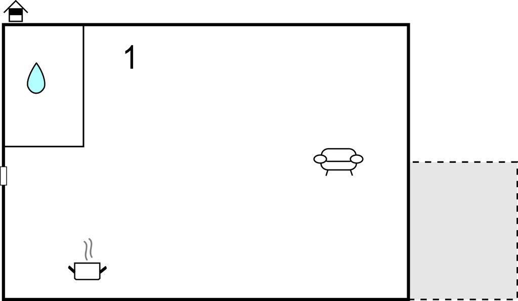 Opholdsstue/køkken - 2 Sovepladser. (Dobbeltseng(e)). 1 Soveplads. (Sofa, madras eller lignende).