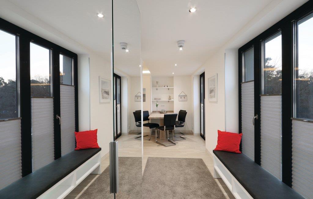 Ferielejligheden Garden Suite er en særlig lys og solrige lejlighed, den ligger i sidebygningen af Prora Solitaire. Derudover er den en af de få lejligheder med vinduer på tre sider, og I har nærsten en 180 graders udsigt over øen Rügen. Mod nord, vest og syd kan I nyde udsigten over skov- og hedearealerne. Den store opholdsstue med det flotte køkkenhjørne har i særdeleshed et godt lysindfald. Den fantastiske strand og de parklignende anlæg i Prora Solitaire ligger lige udenfor døren.