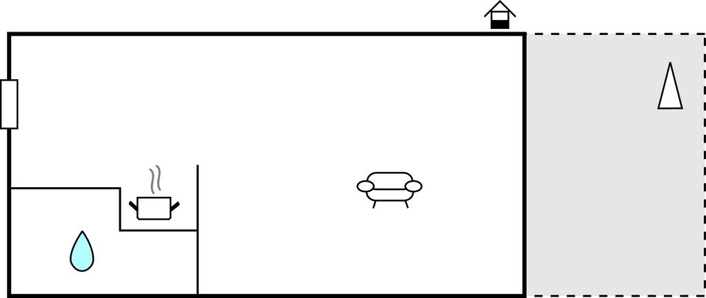 Opholdsstue/køkken 37m2 - 2 Sovepladser. (Dobbeltseng(e)). 1 Soveplads. (Sofa, madras eller lignende).