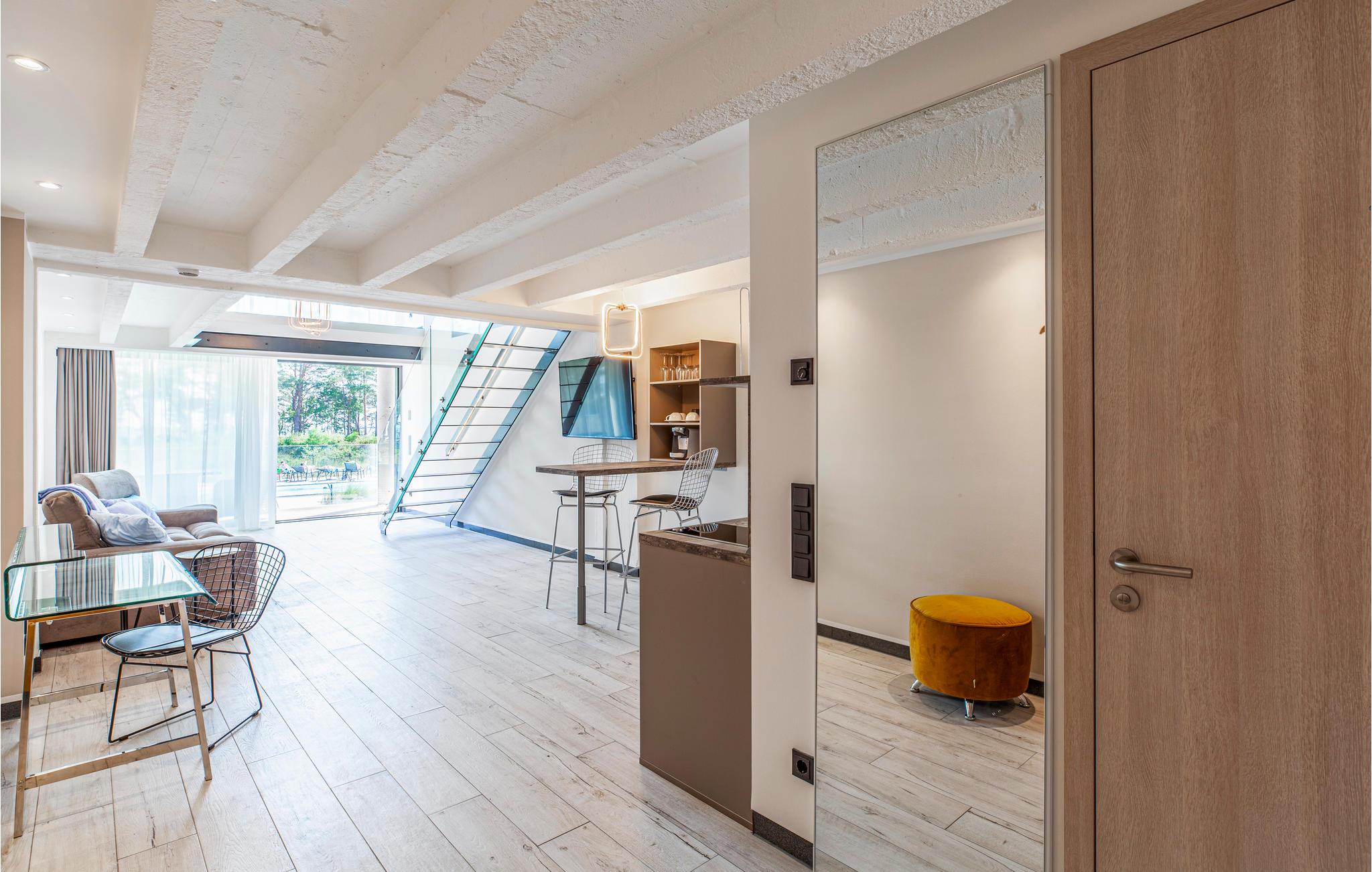 Moderne, eksklusive lejligheder på en af ??Tysklands smukkeste strande: Tilbring jeres Østersøferie i disse designerferielejligheder i feriehuset "Prora Solitaire" på Rügen. Den eksklusive "Avida Loft" er noget særligt med sit elegante og exceptionelle design i to etager. Takket være de store, elektriske panoramavinduer og den generøst glaserede konstruktion er den loftlignende lejlighed meget lys og fyldt med lys. Alle områder er forbundet, hvilket skaber en åben følelse. Overetagen, der er tilgængelig via en trappe, huser det åbne sove- og påklædningsområde. Nyd udsigten over Østersøen direkte fra jeres seng. Den eksklusive boxmadras med sine meget komfortable madrasser giver jer mulighed for at begynde dagene dejligt udhvilet. Der er en ekstra soveplads på sovesofaen i opholdsstuen. Det lille tekøkken har opvaskemaskine og, for kaffeelskere, en Tassimo-kapselmaskine (medbring venligst jeres egne kapsler). Begge altaner vender mod øst og har havemøbler og liggestole. Her kan I nyde morgenmaden med udsigt over poolen og fyrreskoven, mens I lytter til havets brusen, mens I nyder de varme solstråler. Lejligheden ligger direkte over spa-området, hvilket gør det til en kort tur til afslapning. Læg hverdagen bag jer og nyd tiden sammen. Ferielejligheden tilbyder jer som par al komfort til afslappende dage. Lejligheden lover en atmosfære af nydelse og velvære med lækre kvalitetsløsninger. Eksklusive møbler er perfekt afstemt og repræsenterer en livsstil, der kombinerer harmoni og elegance. Hvert møbel og boligtilbehør er omhyggeligt udvalgt, intet er overladt til tilfældighederne. Der er lagt særlig vægt på et sundt indeklima og allergivenlige materialer. De moderne lejligheder ligger lige ud til den 7 km lange, smukke strand Prorer Wiek, som takket være de nærliggende kridtklipper har et næsten caribisk præg med krystalklart vand. Caféer, restauranter og små butikker til hverdagens behov skyder op langs strandpromenaden. Nyd en cappuccino om morgenen eller en solnedgang efter en smuk dag på stranden i hotellets egen Prora Solitaire Bar. Foran ferielejlighederne i Prora Solitaire strækker et parklignende havelandskab sig med en udendørs pool, loungeområder og hjemmehørende flora og fauna. Haven er eksklusivt for Prora Solitaire gæster, En lille fyrreskov afskærmer den fra stranden og sikrer privatliv. Prora Solitaire – en oase af fred for krop, sind og sjæl året rundt! Fire ladestationer, hver med en ladekapacitet på 22,5 kW, er tilgængelige for elbiler. Ladestationerne, der er mod betaling, er placeret i parkeringshuset og er udelukkende tilgængelige for hotellets gæster. Alle Prora Solitaire gæster har adgang til et 1000 m² stort wellness-område, som I kan nå fra jeres lejlighed uden at skulle forlade huset. Her finder I ikke kun en stor indendørs pool med børnepool, men også forskellige saunaer og afslapningsområder, et fitnessområde med passende udstyr og mulighed for massage og andre behandlinger, som kan bookes i receptionen. Andre særlige faciliteter inkluderer restauranten og baren på stedet. Flere gange om ugen kan gæsterne deltage i gratis yogaklasser eller fitnesstræning med erfarne instruktører. Udendørs er der også en basketballkurv, en petanquebane, udendørs skak og to bordtennisborde, som I kan bruge gratis. Gæsterne på Prora Solitaire har mulighed for dagligt at nyde den store morgenmadsbuffet mod betaling. Biler kan parkeres i parkeringshuset på stedet mod et gebyr. Adskillige vaskemaskiner og tørretumblere er tilgængelige for alle gæster i et separat rum på 2. sal mod et gebyr.