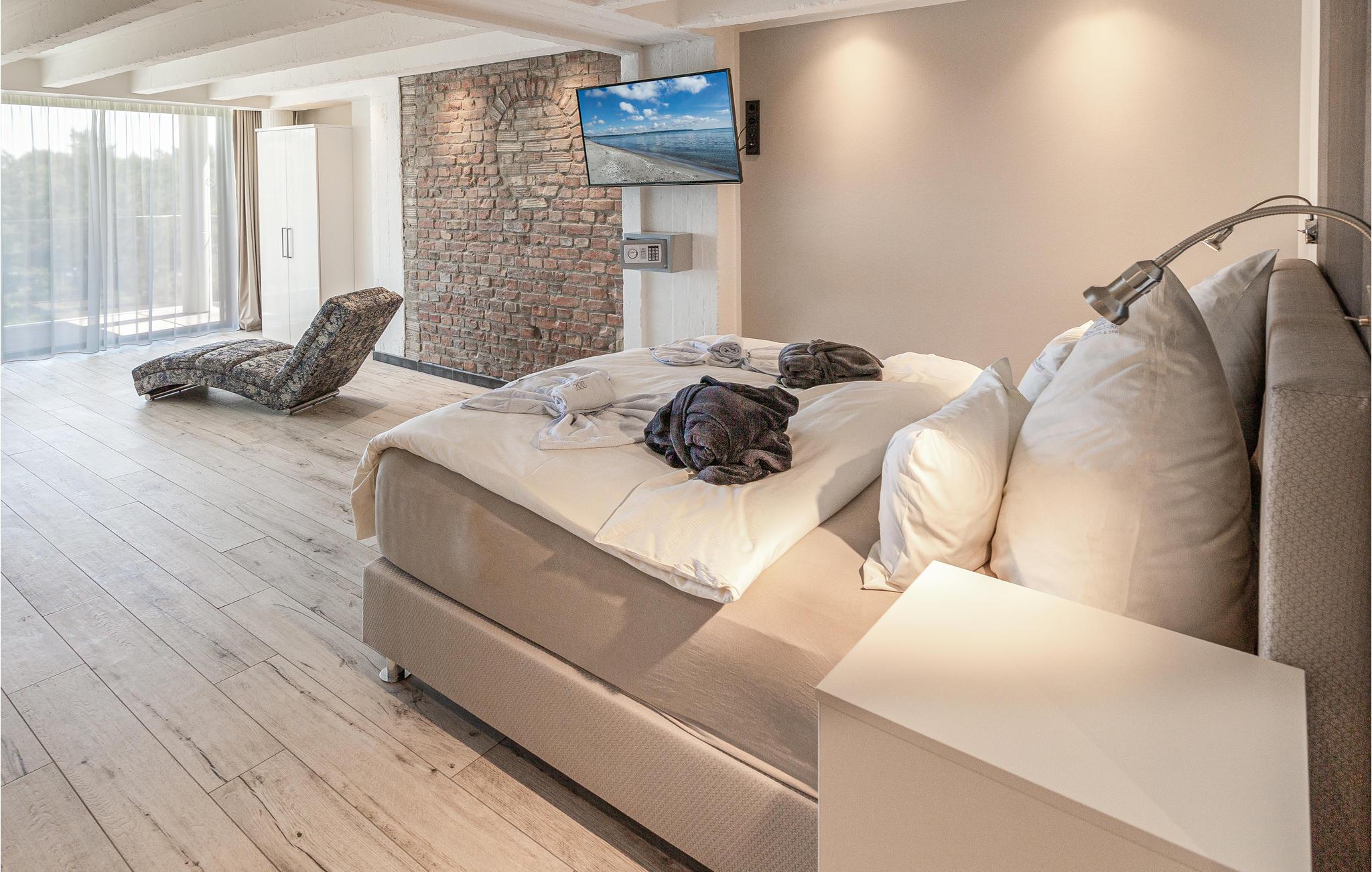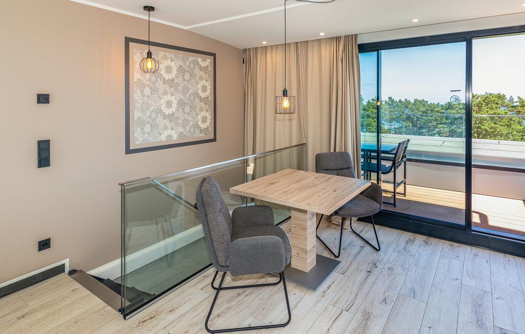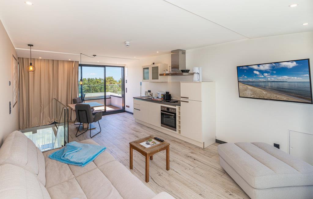 Lejligheden ligger i det historiske feriekompleks Prora, der blev påbegyndt i 1936. I dag er det omdannet til et moderne feriested og inviterer jer indenfor til en behagelig ferie. Nyd godt af wellnessafdelingen med sauna og pool. I finder også et fitnesscenter med træningsudstyr, så I også kan holde jer i form på ferien.