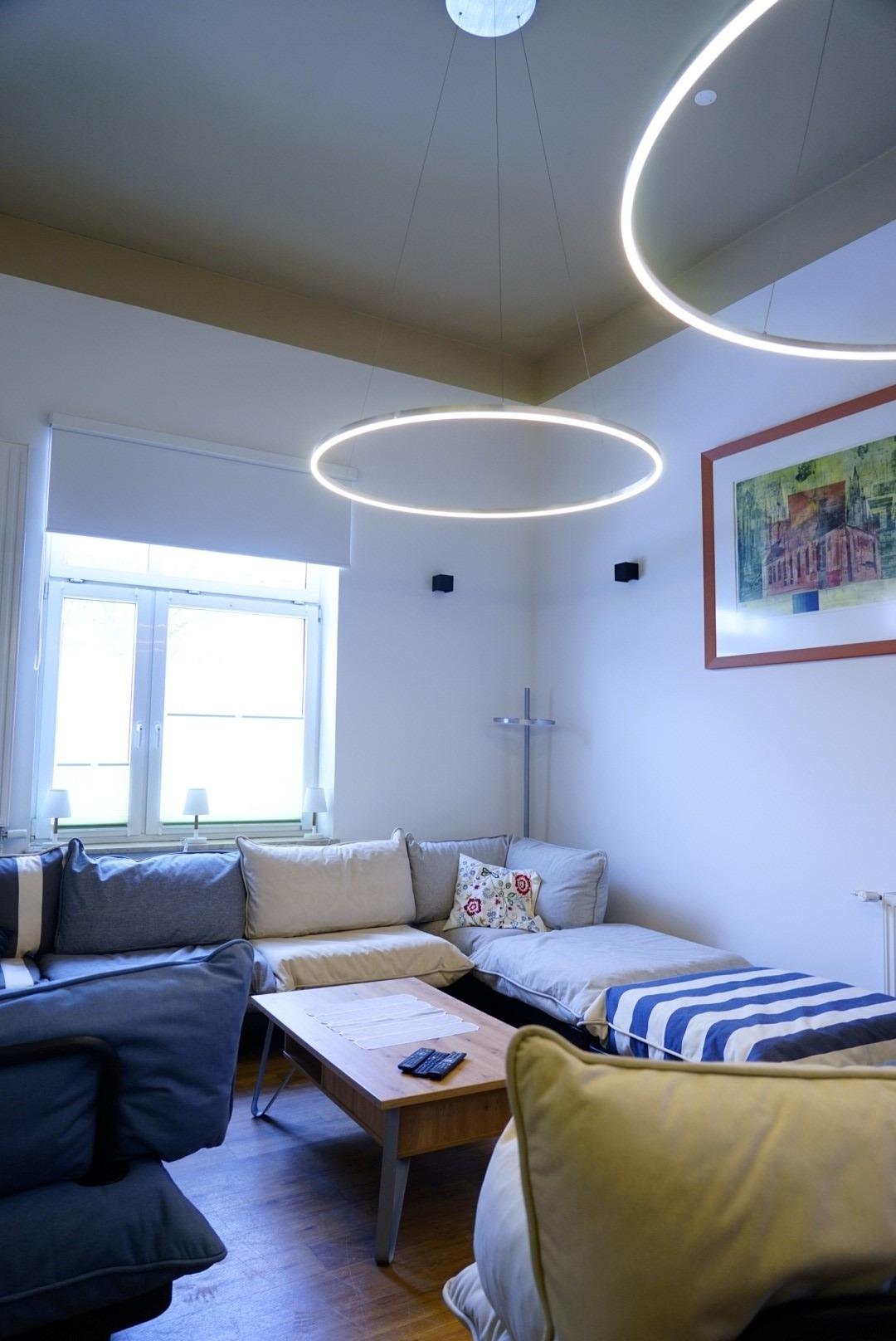 Vom Parkplatz ( 8 PKW ) am Haus gelangen Sie in den Wohnbereich der aus 2 Teilen besteht, damit man sich auch einmal zurückziehen kann. Ein Wintergarten mit Dart und Kicker beugt Langeweile vor. Auf der Terrasse lädt eine Außensauna ganzjährig zum Entspannen ein (Münzer).