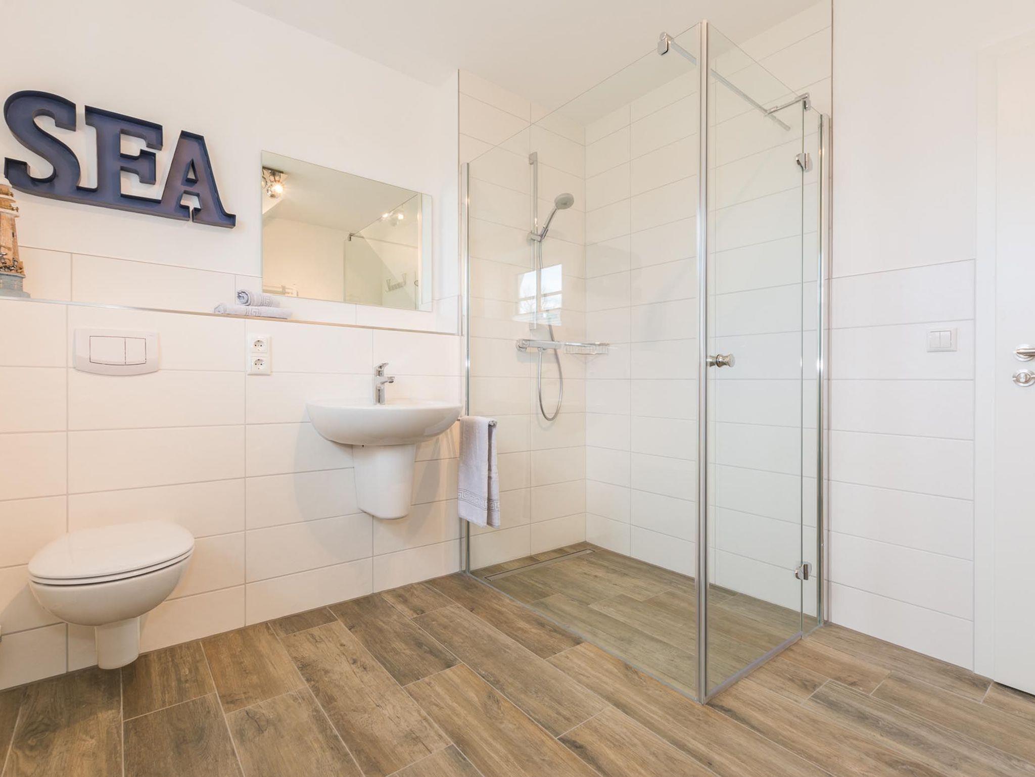 Im Obergeschoss befinden sich 2 Schlafzimmer sowie ein weiteres Badezimmer, welches ebenfalls mit einer Dusche ausgestattet ist.