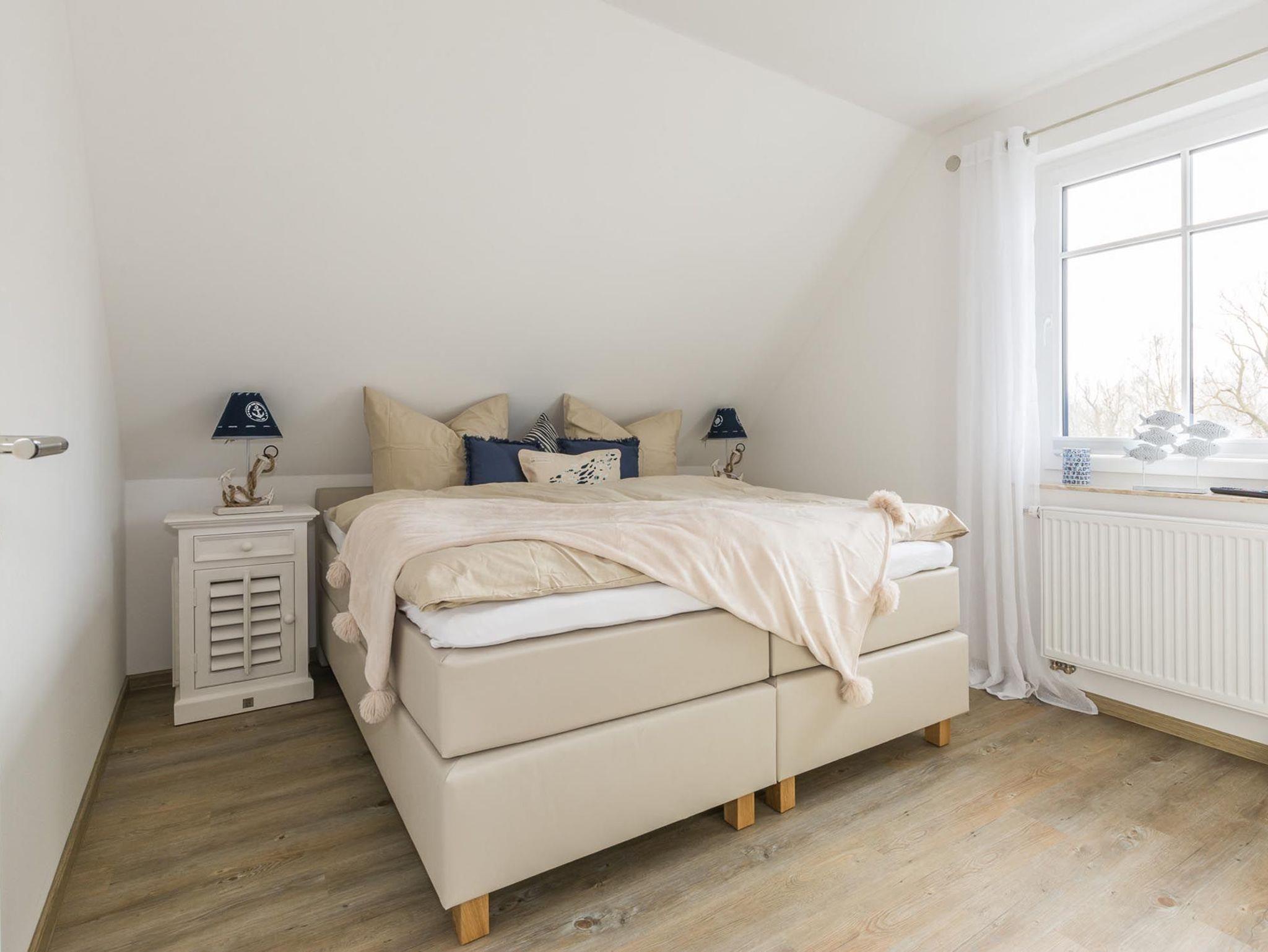 Eins der Schlafzimmer sind mit komfortablen Boxspringbetten ausgestattet.
