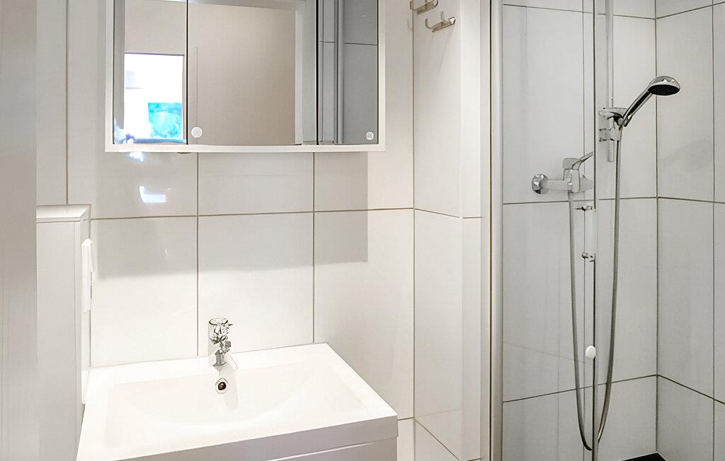 Badeværelse (nr. 1) - WC. Varmt og koldt vand. Bruser