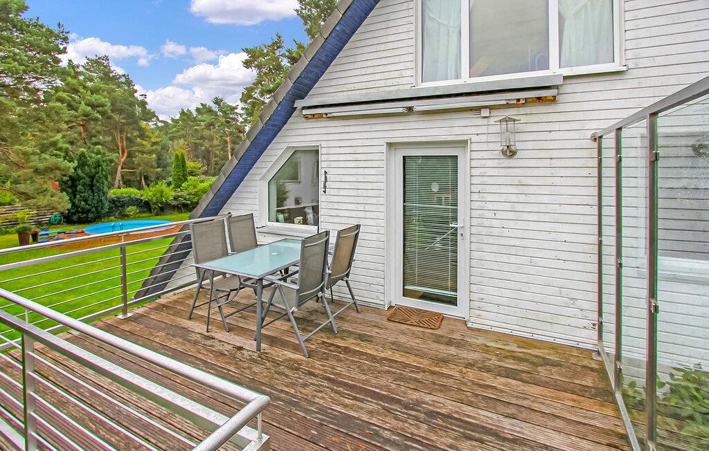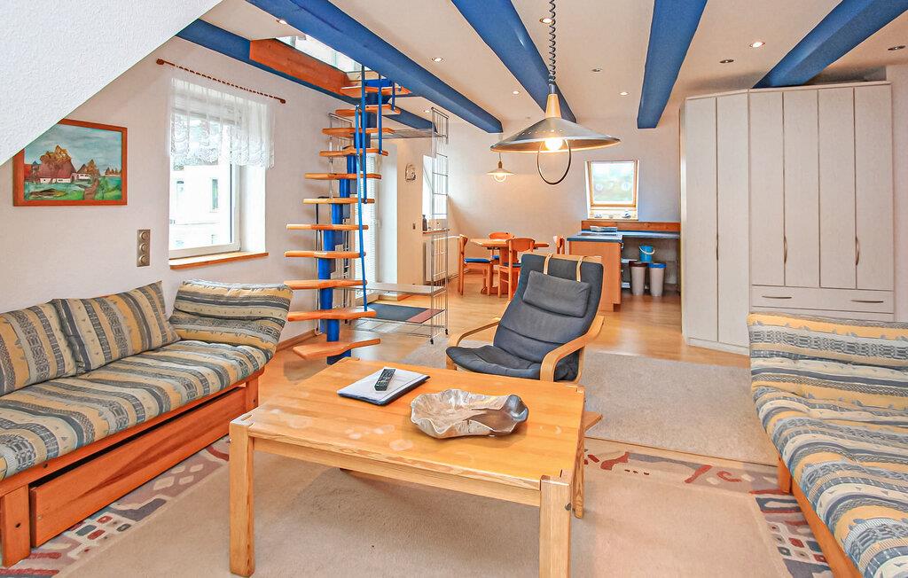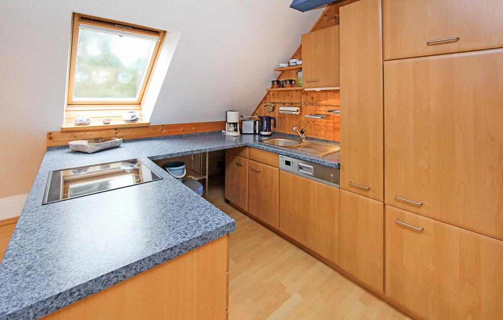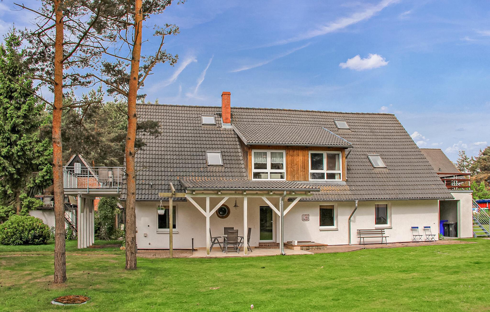 Ferielejligheden er beliggende separat på øverste etage i et sommerhus på ejerens 3000 kvadratmeter keramik og feriegård i direkte skov beliggenhed. Der tilbydes i alt seks ferielejligheder i forskellig størrelse. Den 75 kvm store ferielejlighed til 4 personer er udstyret med opholdsstue (polstrede møbler, fladskærms-tv), åbent tekøkken (elkomfur med ovn, køleskab med fryser, opvaskemaskine, diverse køkkenmaskiner), soveværelse med 2 enkeltsenge senge og badeværelse med badekar og bruser. På loftet (adgang via en stejl, pladsbesparende trappe) er der endnu et soveværelse (dobbeltseng) og et ekstra toilet. Adgang til lejligheden sker via en separat udvendig trappe. Dette fører også til en balkon med opholdsområde og grill. Der er også en udendørs pool (fælles brug), en parkeringsplads, cykelopbevaring og WiFi. Den samlede pris inkluderer vand, energi og slutrengøring. Håndklæder og sengetøj skal medbringes. Husdyr: En lille hund op til en højde på 40 cm er tilladt i denne ejendom. Betales på stedet: spaskat. Pruchten er en lille by i det sydlige lagunelandskab, cirka 6 km fra feriestedet Zingst ved Østersøen. I byen: restaurant, shopping, lille. Havn, båd- og cykeludlejning, ridestalde og de bedste fiskemuligheder.