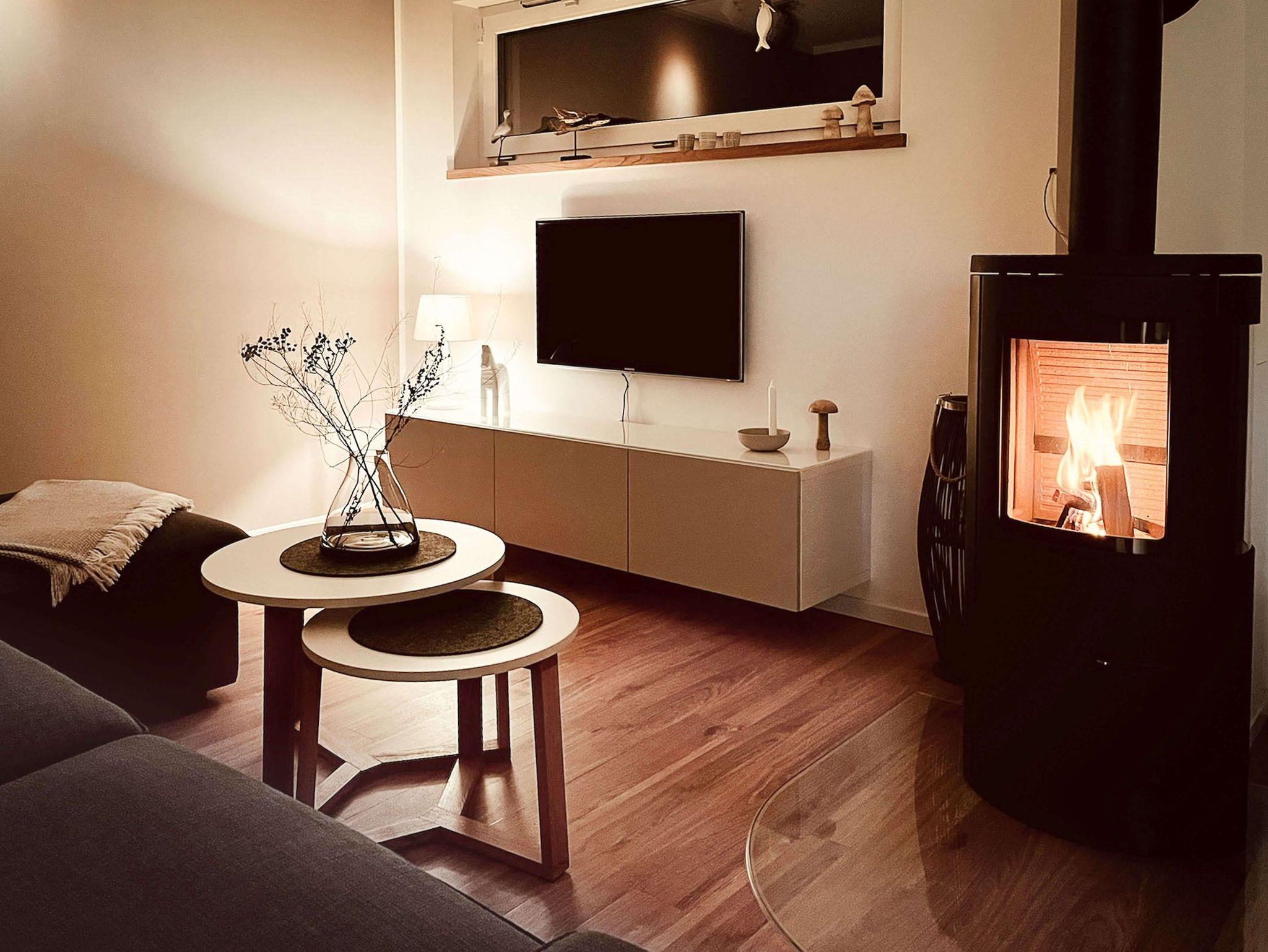 Das geräumige Wohnzimmer lädt mit einer Vielzahl von Annehmlichkeiten zum Entspannen ein. Hier finden Sie einen Fernseher mit SAT/Kabel-Anschluss für unterhaltsame Abende, begleitet von Musik über das Radio. Die wohlige Atmosphäre wird durch einen Kamin verstärkt, der nicht nur Wärme, sondern auch Behaglichkeit spendet. Die Fußbodenheizung sorgt für angenehme Temperaturen, während das komfortable Sofa den perfekten Ort zum Verweilen darstellt.