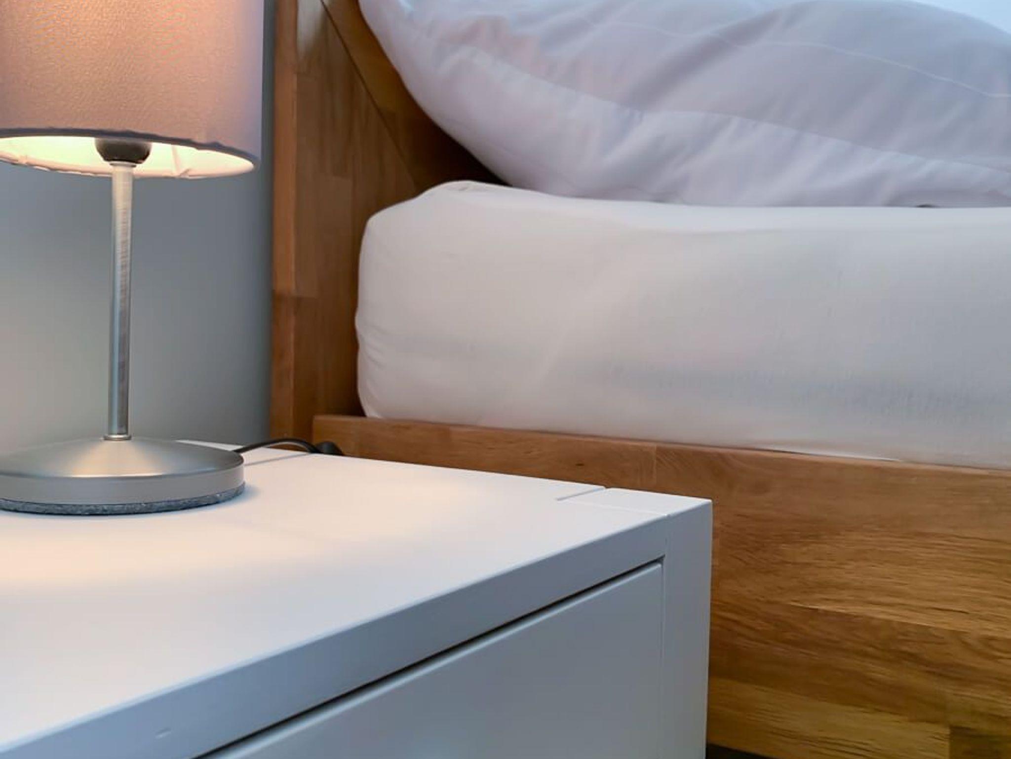 Im Obergeschoss des Ferienhauses Redensee befinden sich 2 Schlafzimmer mit je einem Doppelbett (1,80m), Kleiderschrank und zusätzlichen Ablagemöglichkeiten. Die Fenster sind mit Mückengittern und Verdunklungsplissees ausgestattet, damit Sie ungestört und erholsam schlafen können. Das großzügige Badezimmer mit Dusche und Badewanne rundet das Angebot ab und sorgt für den nötigen Komfort im Urlaub.
