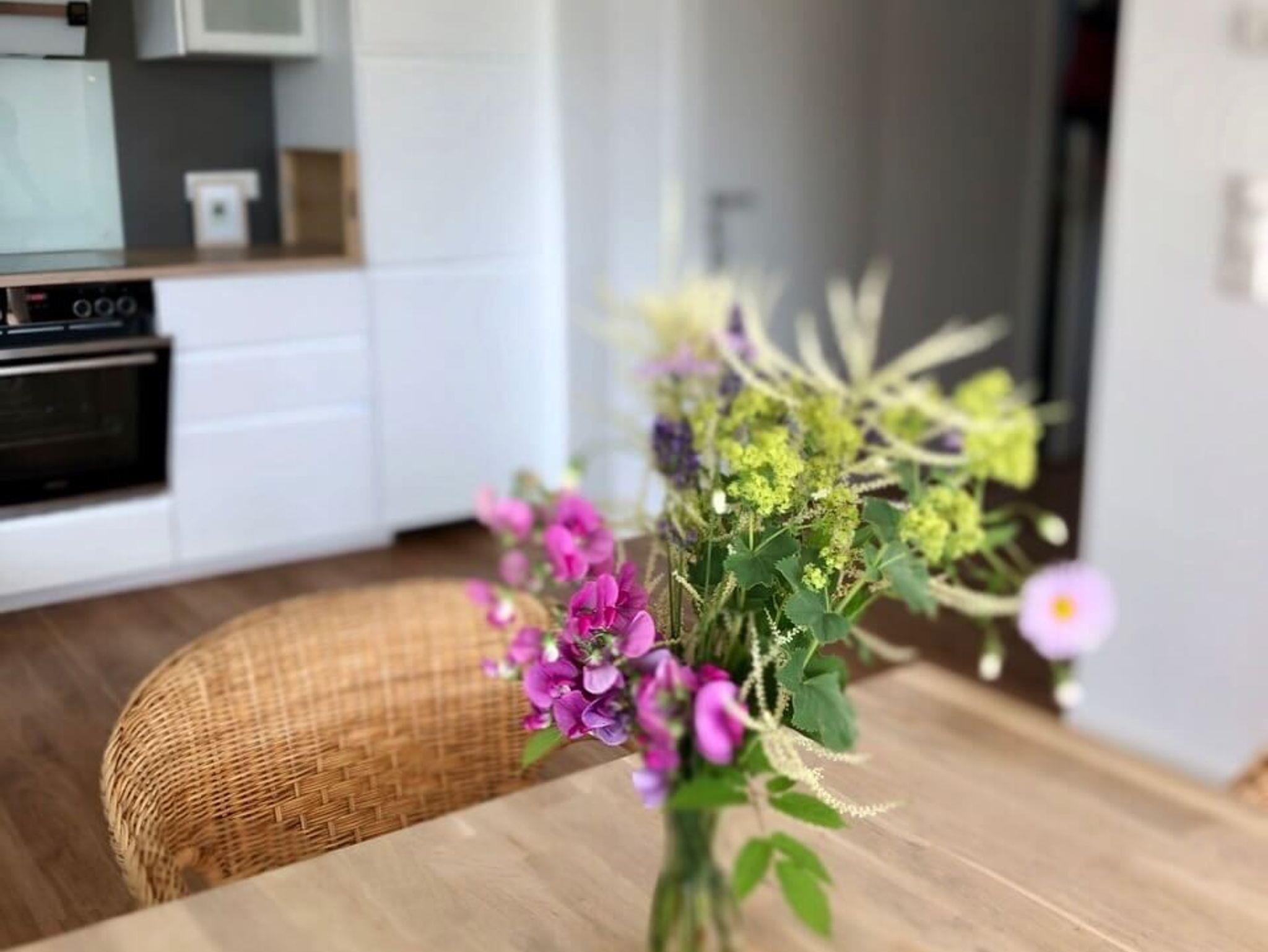 Die komplett ausgestattete Küche lässt keine Wünsche offen. Von einem Backofen über einen geräumigen Kühlschrank bis hin zu einem praktischen Geschirrspüler finden Sie hier alles, was Sie für die Zubereitung Ihrer Mahlzeiten benötigen. Ein Gefrierfach bietet zusätzlichen Stauraum, während ein Wasserkocher, eine Kaffeemaschine, ein Toaster, ein Eierkocher und ein Mixer Ihre kulinarischen Kreationen unterstützen. Das Ceran-Kochfeld lädt zum Kochen ein, während der Esstisch den perfekten Ort für gemeinsame Mahlzeiten bietet. Die Fußbodenheizung und das Fliegengitter vervollständigen die durchdachte Ausstattung.