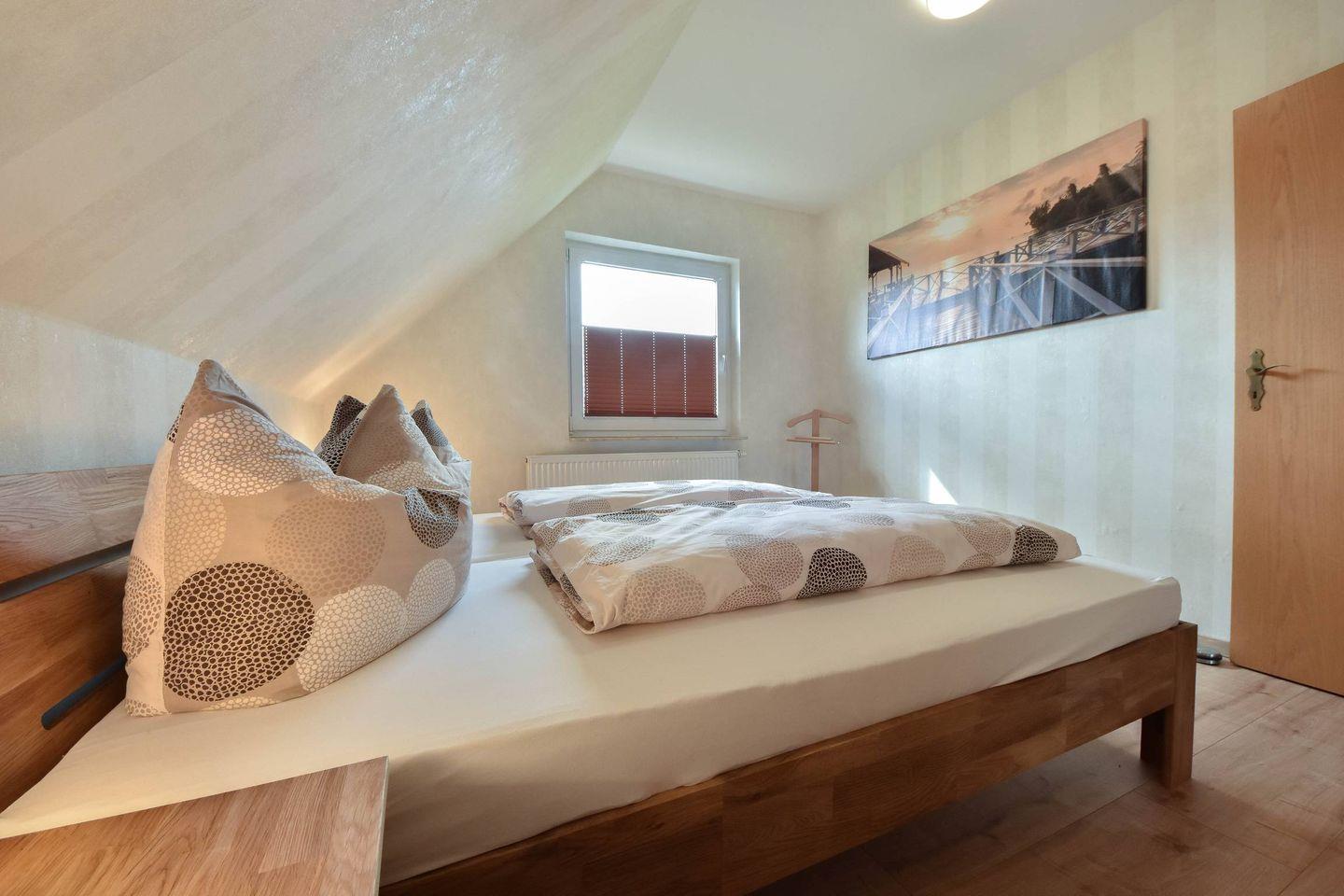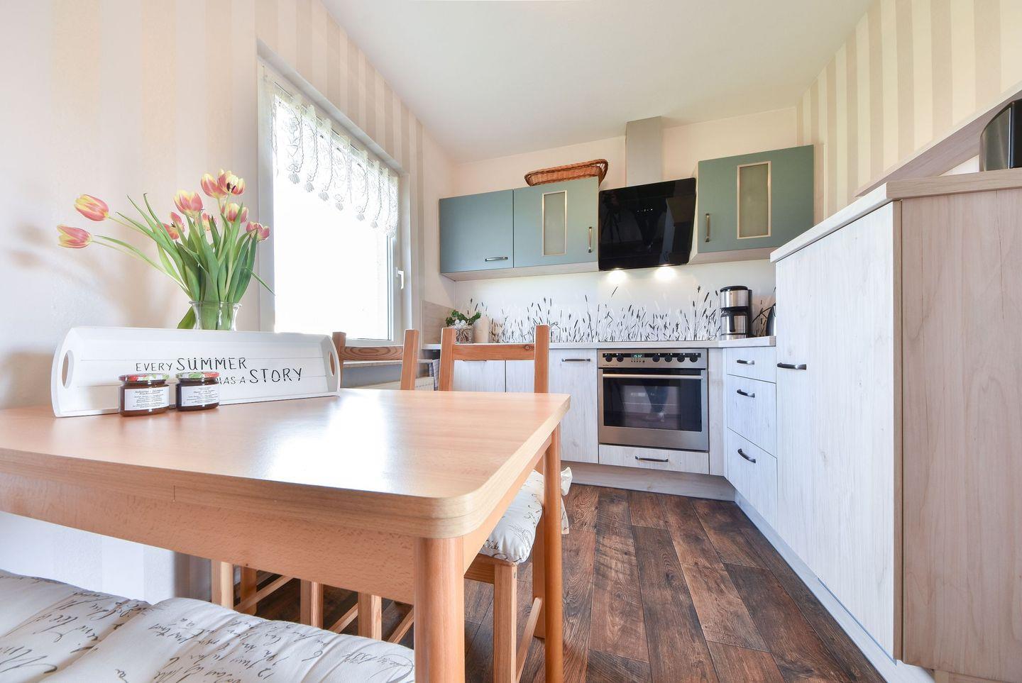 Die kleinere der beiden Ferienwohnungen mit 55 m² ist über den zweiten Eingang zu erreichen. Sie ist ideal für vier Personen und somit etwa für Kinder, die bereits allein wohnen möchten oder die Großeltern, denen Rückzugsmöglichkeiten im Urlaub wichtig sind.