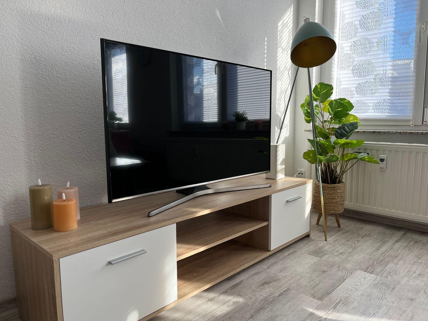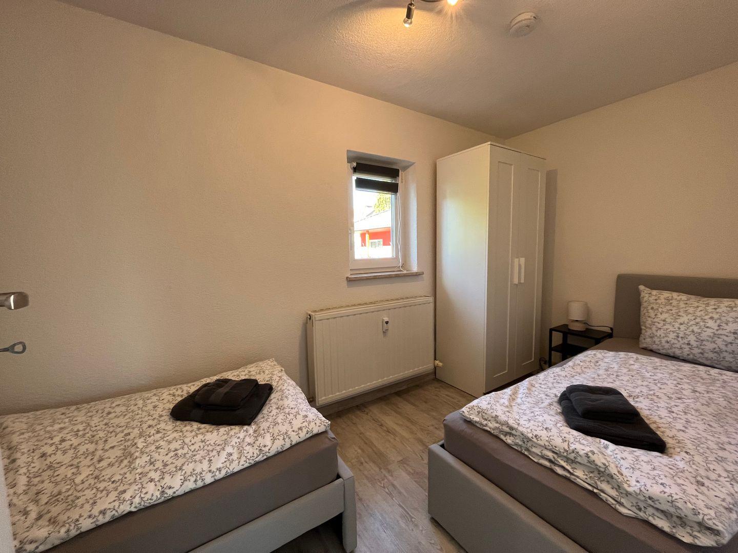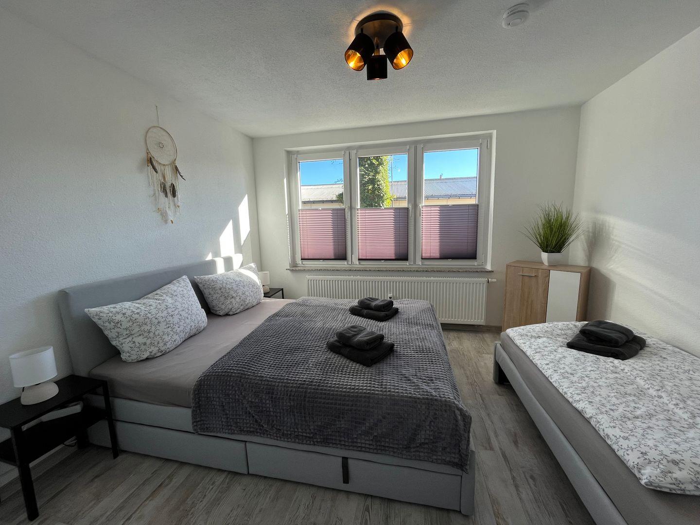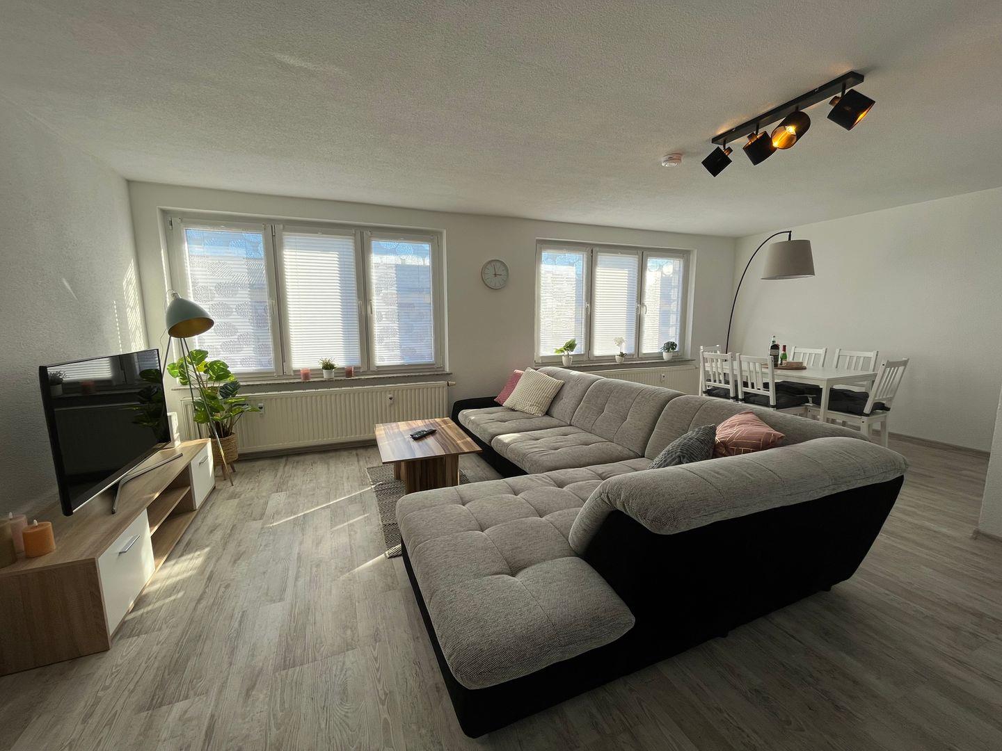 Die Ferienwohnung besteht aus zwei geschmackvoll eingerichteten Schlafzimmern mit modernem Laminatboden, die zum Entspannen und Verweilen einladen. Das helle und einladende Wohnzimmer verfügt über eine bequeme Sofaecke und einen großen TV mit digitalem Anschluss, ideal für entspannte Filmabende mit der ganzen Familie. Außerdem haben Sie hier Zugang zu einem Essbereich, der sich perfekt für gemeinsame Mahlzeiten eignet.